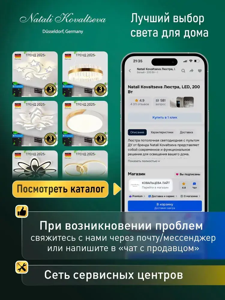 Natali Kovaltseva Люстра, Без цоколя, 240 Вт