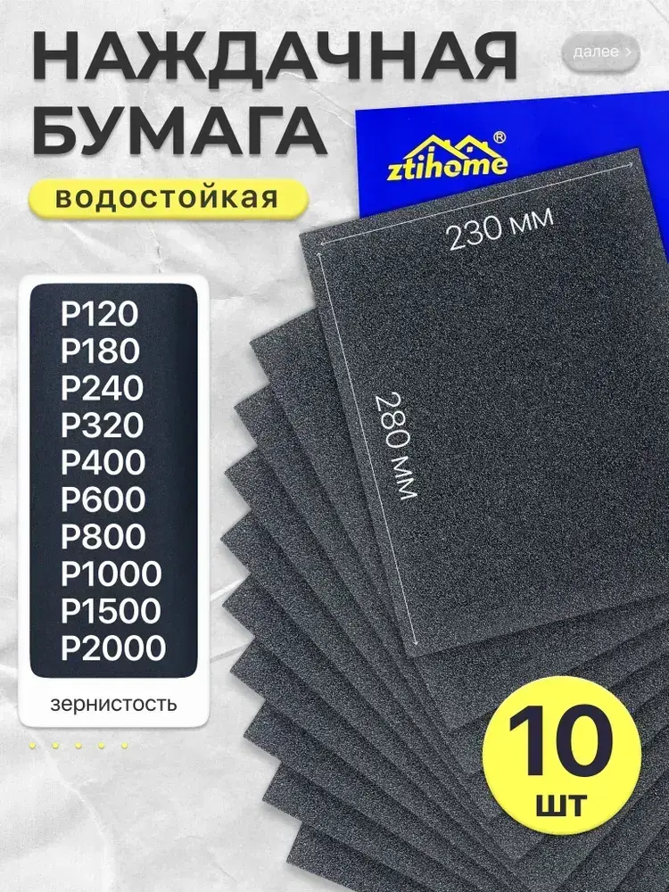 Наждачная бумага набор 230х280 Р120 Р180 Р240 Р320 Р400 Р600 Р800 P1000 P1500 P2000 Шкурка шлифовальная , Водостойкая наждачная бумага, 10 шт. ZTIHOME SILICON