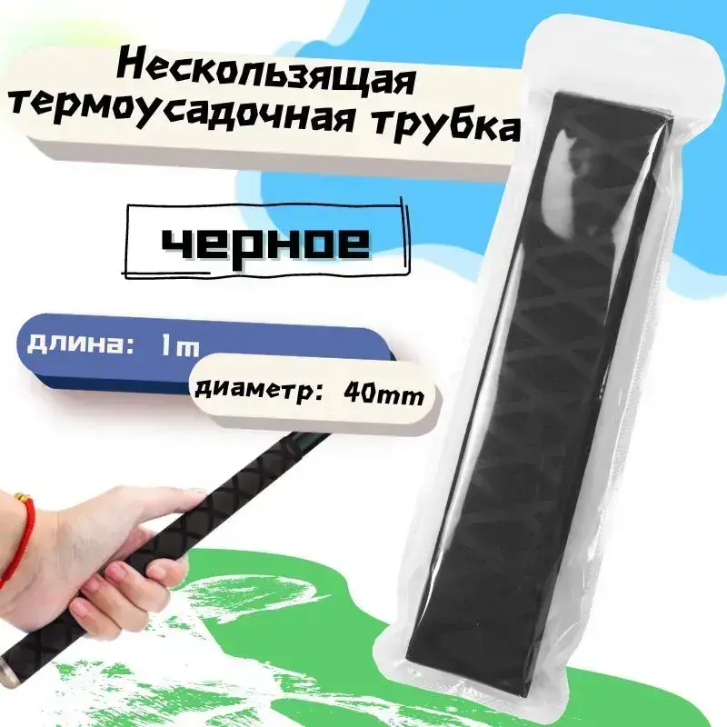 Нескользящая термоусадочная трубка с рисунком, длиной 1 метр, подходит для рыболовных снастей, спортивных товаров и т.д., внутренний диаметр 40 мм, черная