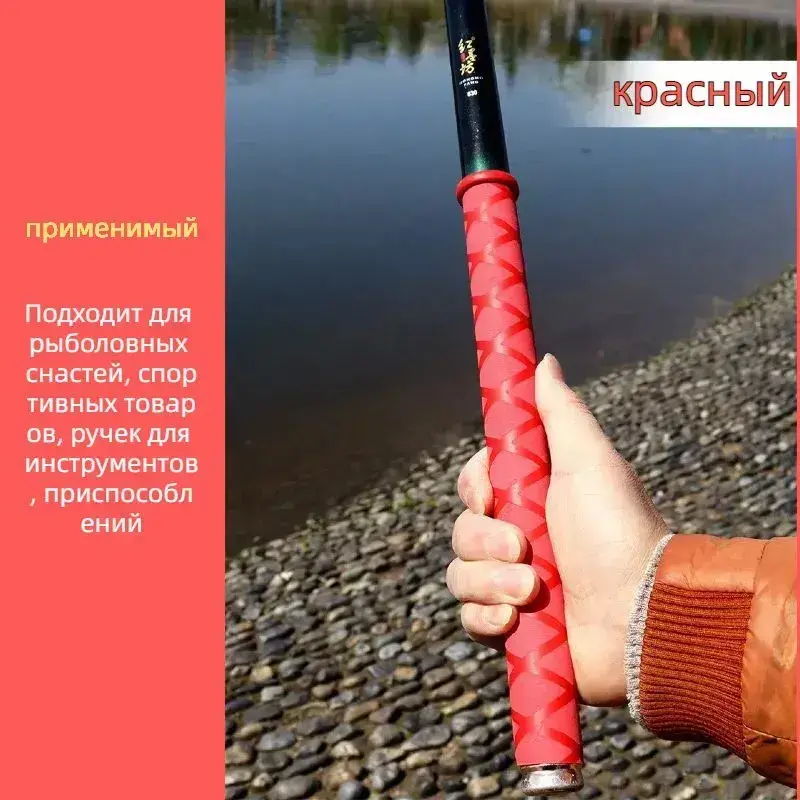 Нескользящая термоусадочная трубка с рисунком, Подходит для рыболовных снастей, спортивных товаров, ручек инструментов и т.д. ,Диаметр 50 мм, длиной 1 метр, красный.