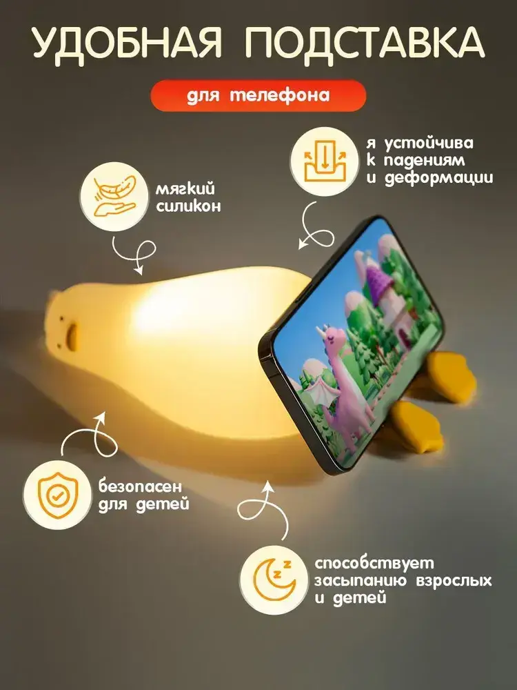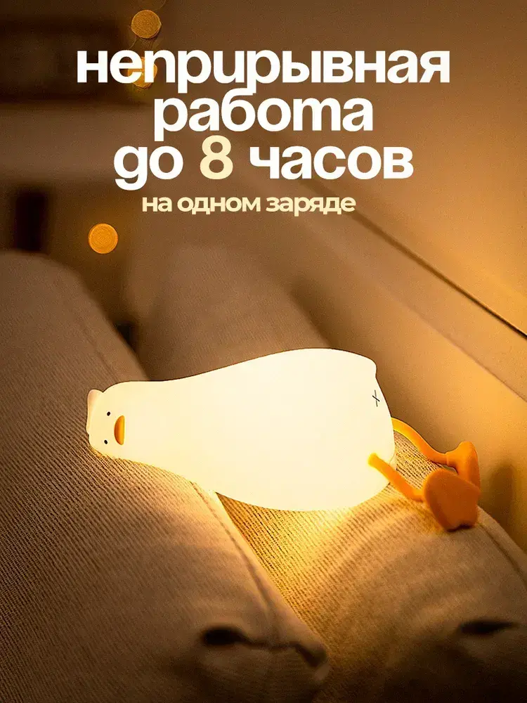 Ночник детский с таймером Уставшая уточка, беспроводной силиконовый светильник для ребенка