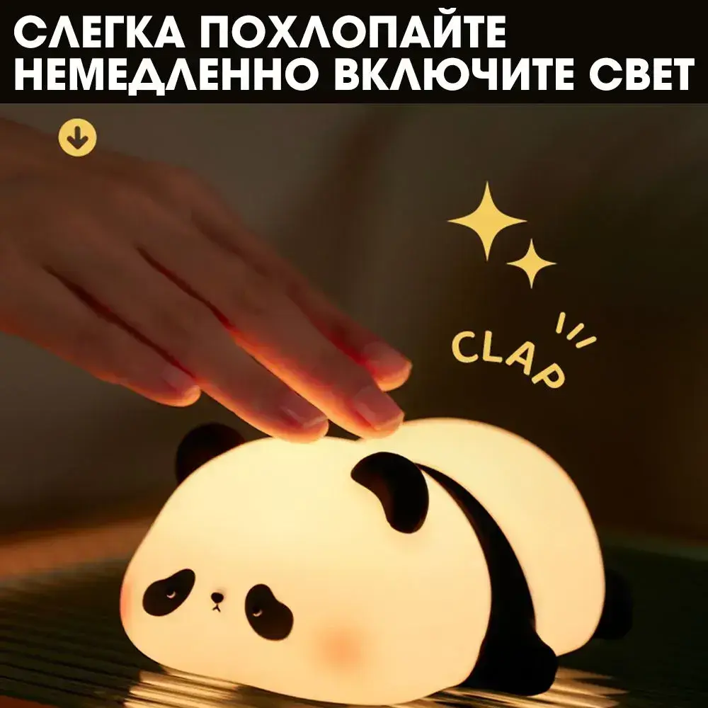 Ночник детский в форме панды: три уровня яркости, мягкий свет и таймер на 30 минут, уютный спутник для сна