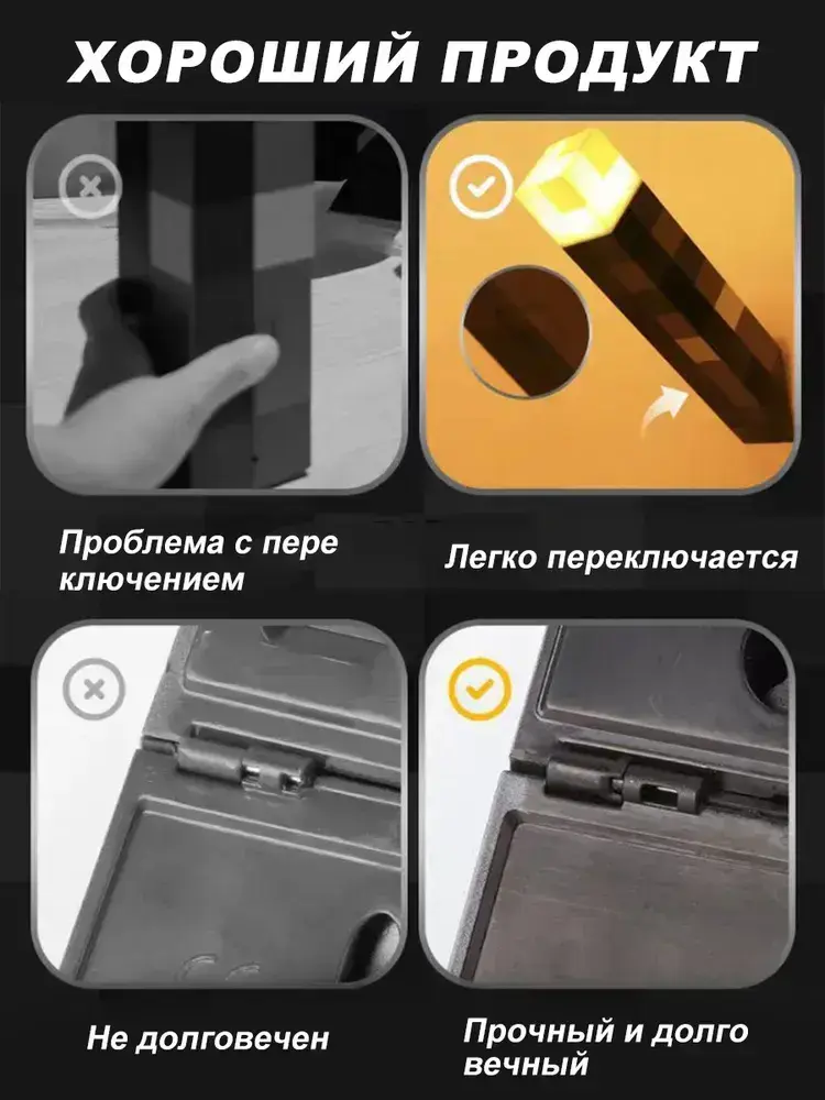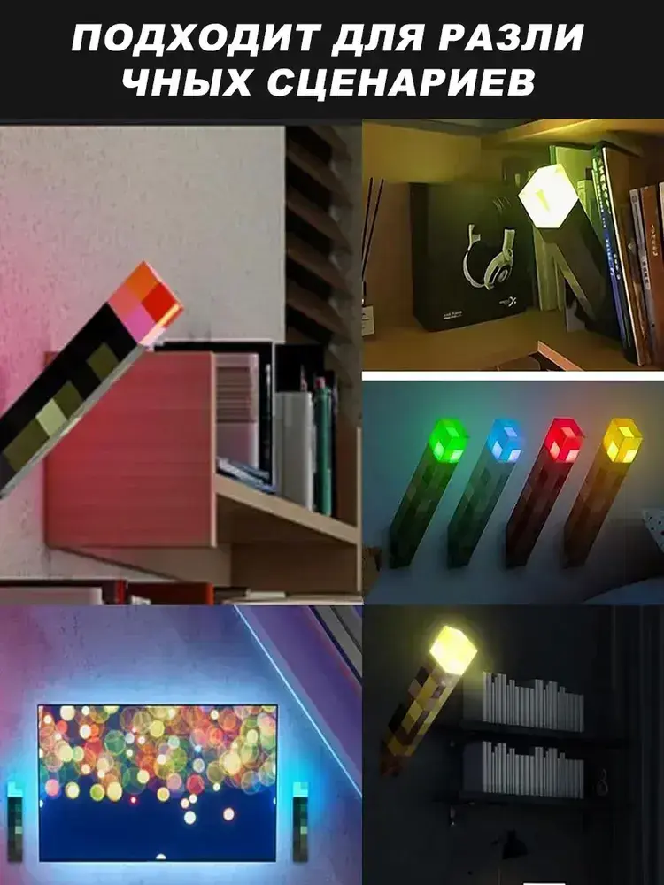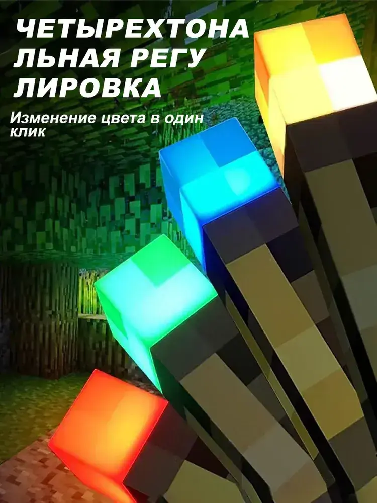 Ночник майнкрафт, светильник факел minecraft, 4 цвета беспроводной крепление на стену
