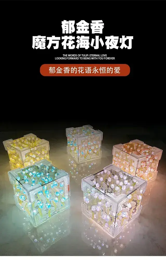 Ночник ручной работы DIY цветок волшебный куб тюльпан ночник
