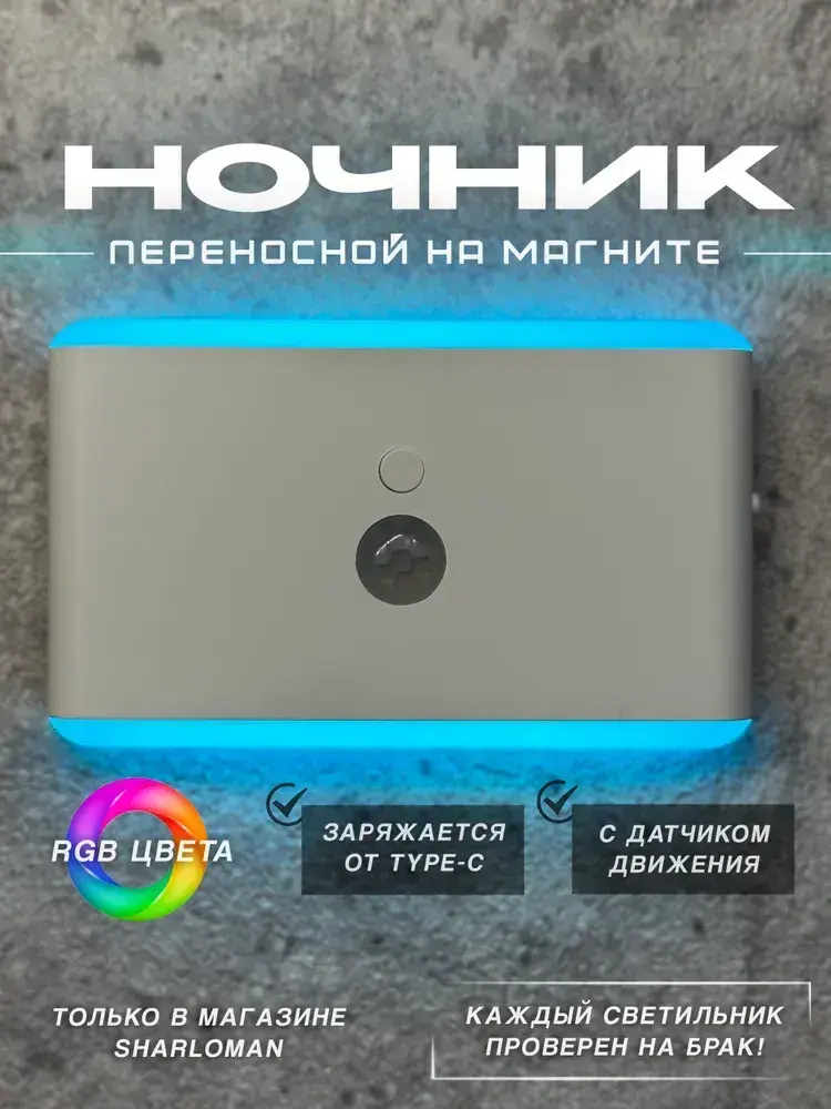 Ночник с датчиком движения, беспроводной светильник на магните, светодиодный