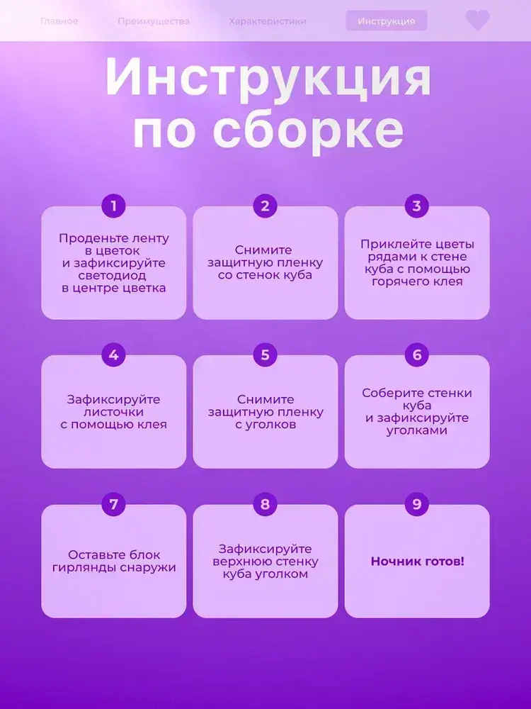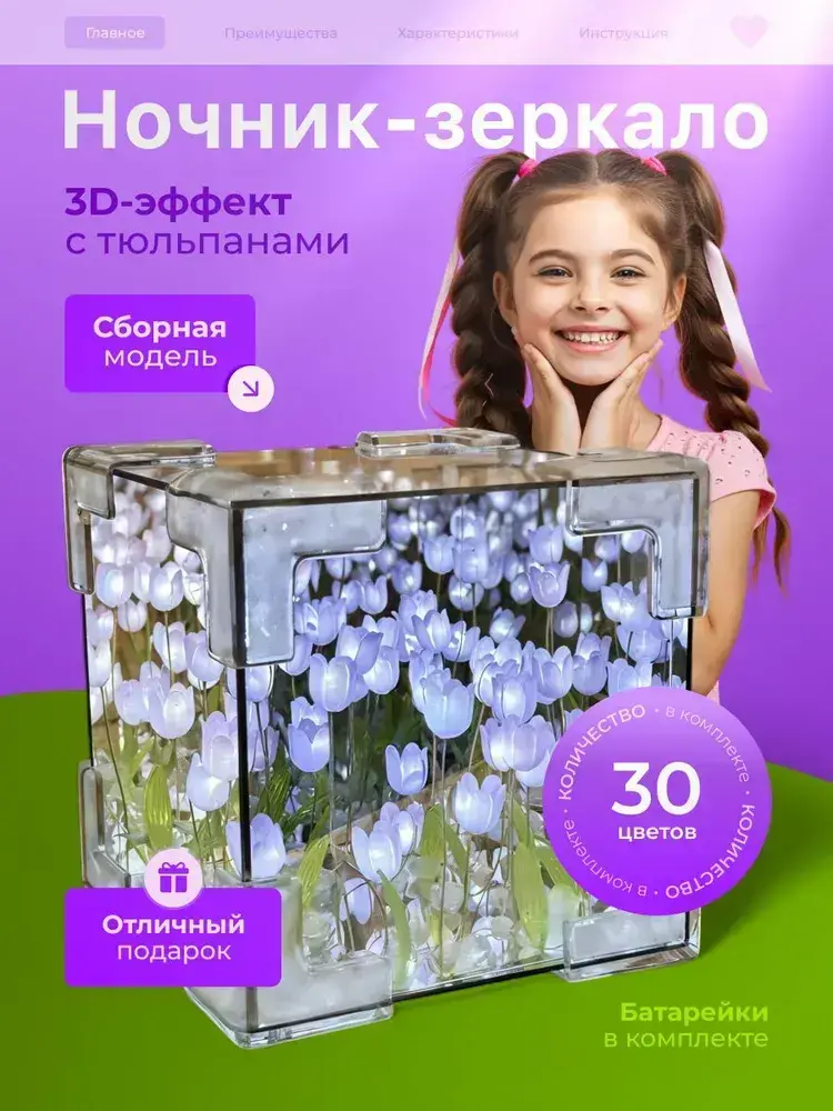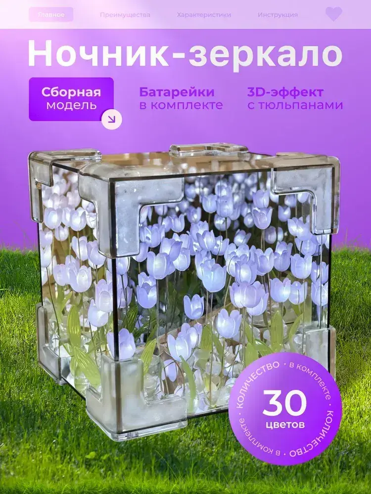 Ночник с тюльпанами, ночник зеркало фиолетовый