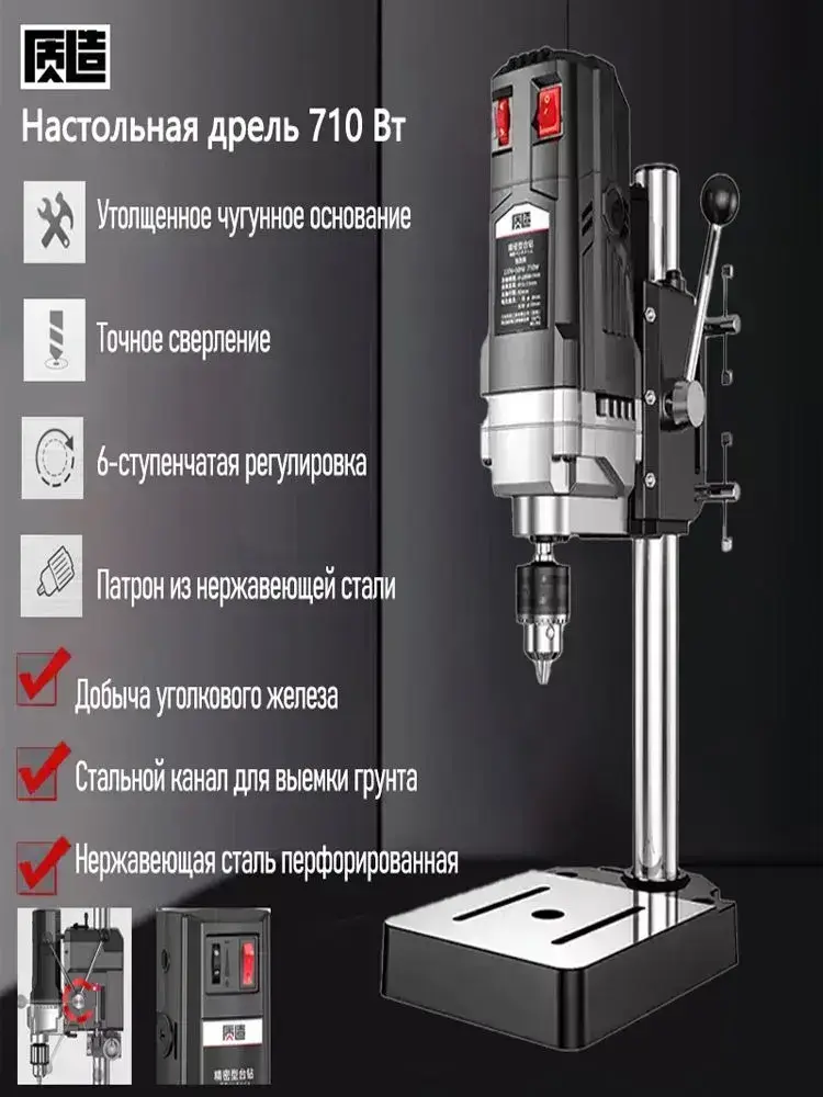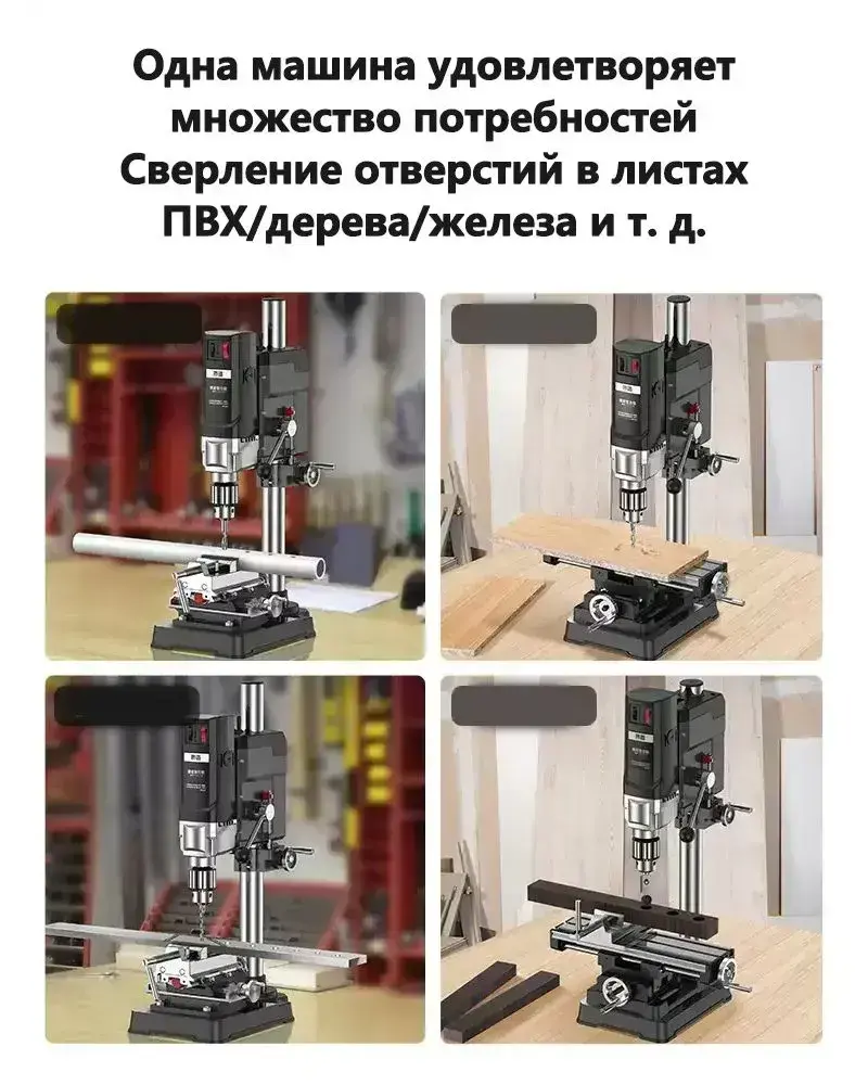 Новый небольшой бытовой сверлильно-фрезерный станок, 710 Вт/60 мм/0-2800 об/мин, черный, 6 скоростей регулировки