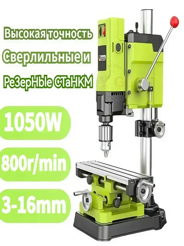 Новый небольшой бытовой сверлильно-фрезерный станок с рабочим столом, 1050 Вт/60 мм/800 об/мин, 6-ступенчатая регулировка скорости