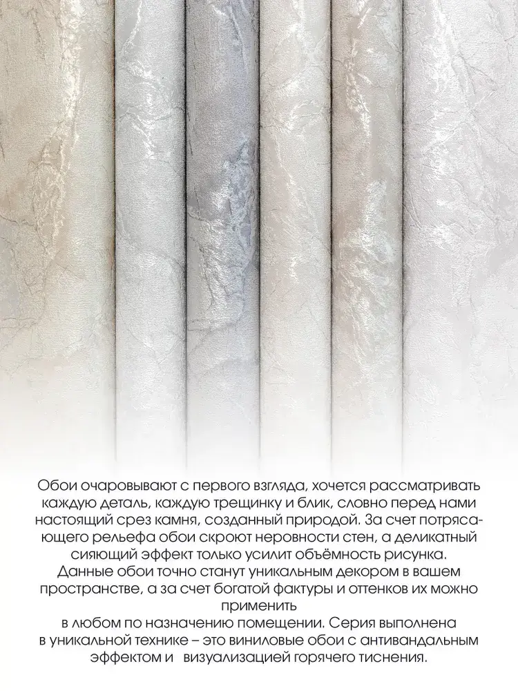 Обои флизелиновые 1,06 RENOWA 1075-06ОАВ Rossi Фактура камня Горная порода Под мрамор C антивандальным эффектом Моющиеся От производителя Метровые 1,06х10м