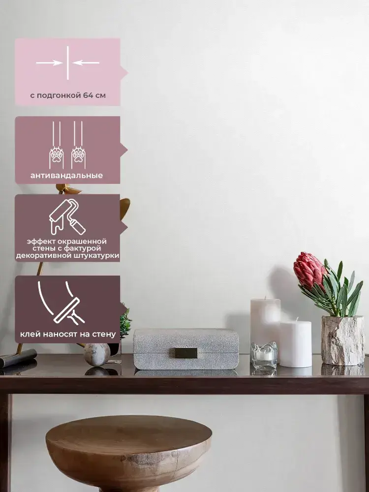 Обои флизелиновые 1.06 СВЕТЛО-СЕРЫЕ MONOLIT m589811 АНТИВАНДАЛЬНЫЕ, под штукатурку, метровые, матовые, моющиеся, для спальни, кухни,1.06*10.05 м