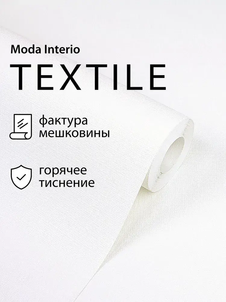 Обои флизелиновые 1.06, виниловые белые однотонные Textile (Moda Interio) метровые под ткань