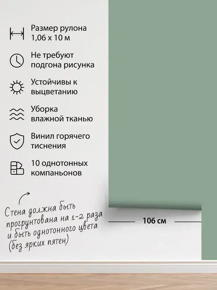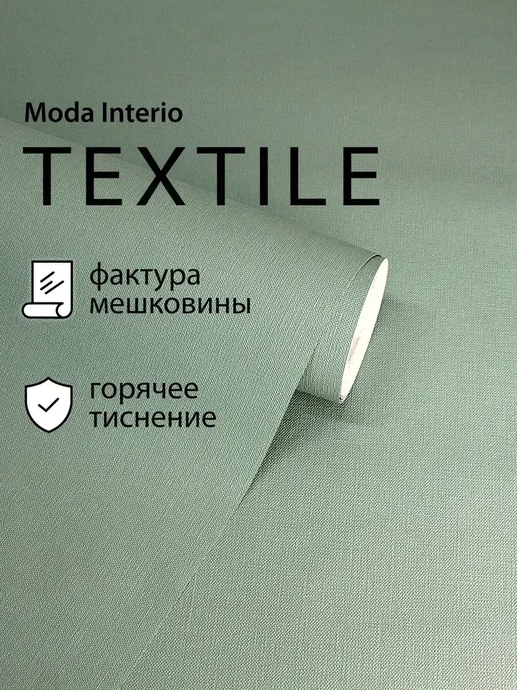 Обои флизелиновые 1.06, виниловые зеленые однотонные Textile (Moda Interio) метровые под ткань для гостиной и спальни в стиле прованс