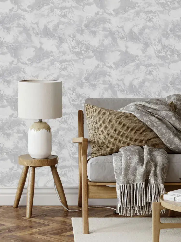 Обои флизелиновые, штукатурка бело-серая перламутровая, метровые, для гостиной, Мальдивы (VILIA, 1796-21)