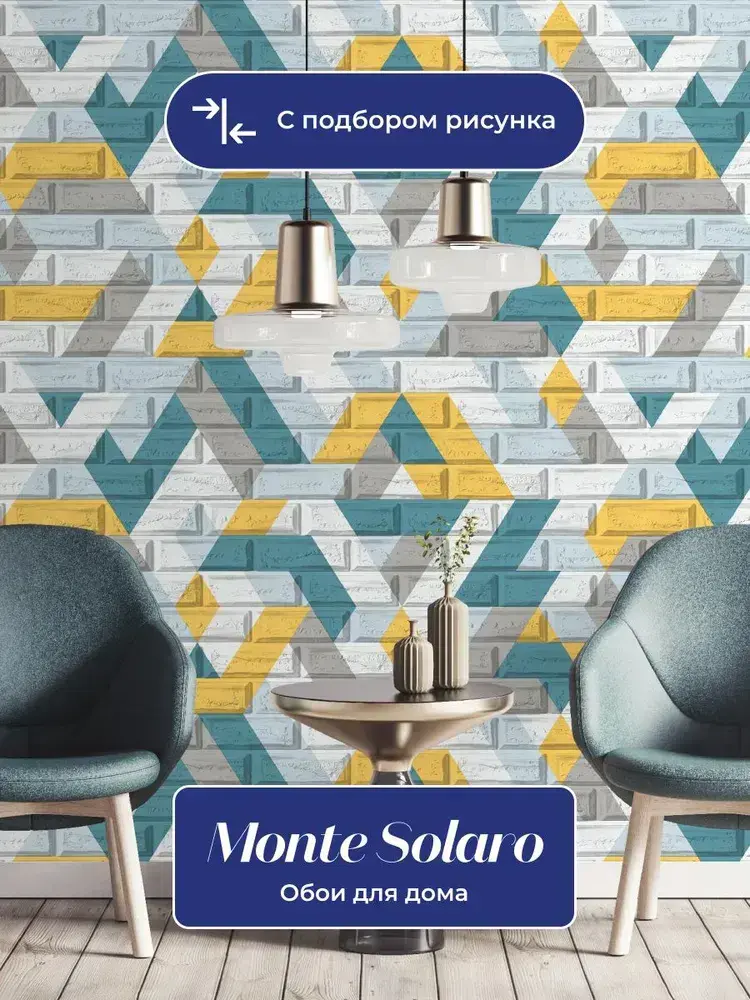 Обои флизелиновые виниловые Real Kirpichi 9050-05 Monte Solaro, кирпичи, для спальни, гостиной, кухни, коридора, детской, метровые