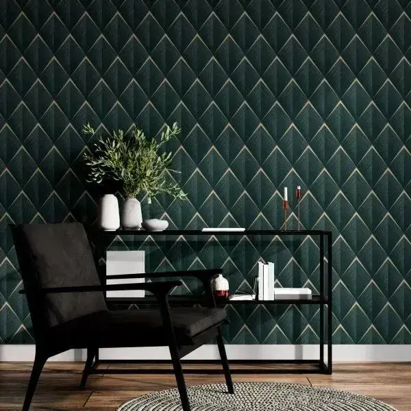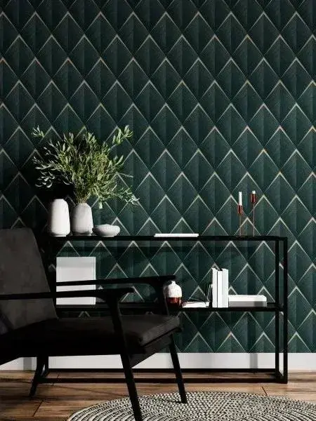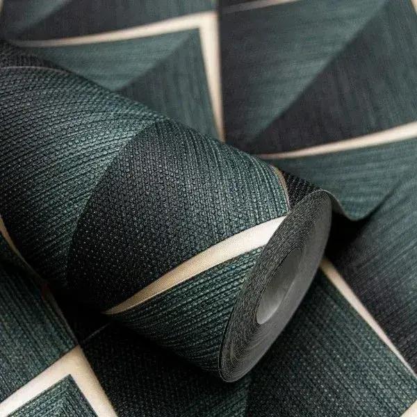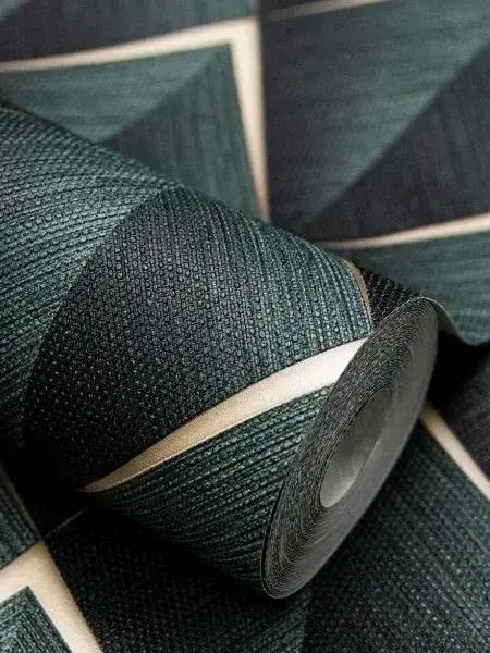 Обои винил горячего тиснения, моющиеся на флизелиновой основе Marvig Modish 1.06м х 10.05м, геометрия, темно-зеленый