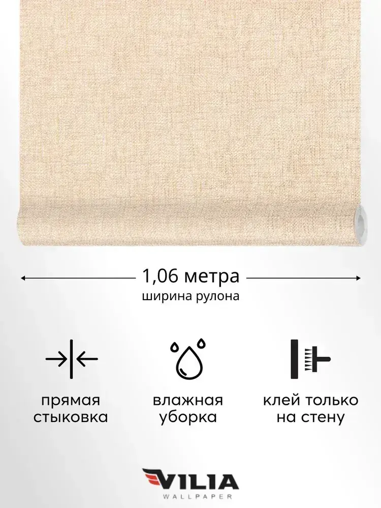 Обои виниловые на флизелине Текстиль мешковина светло-бежевая 1,06, для кухни (VILIA, 1960-61)