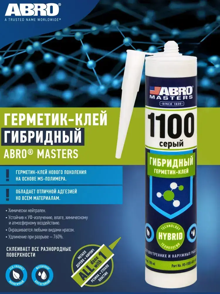 Однокомпонентный универсальный гибридный герметик-клей нового поколения на основе MS-полимера (серый) ABRO MASTERS