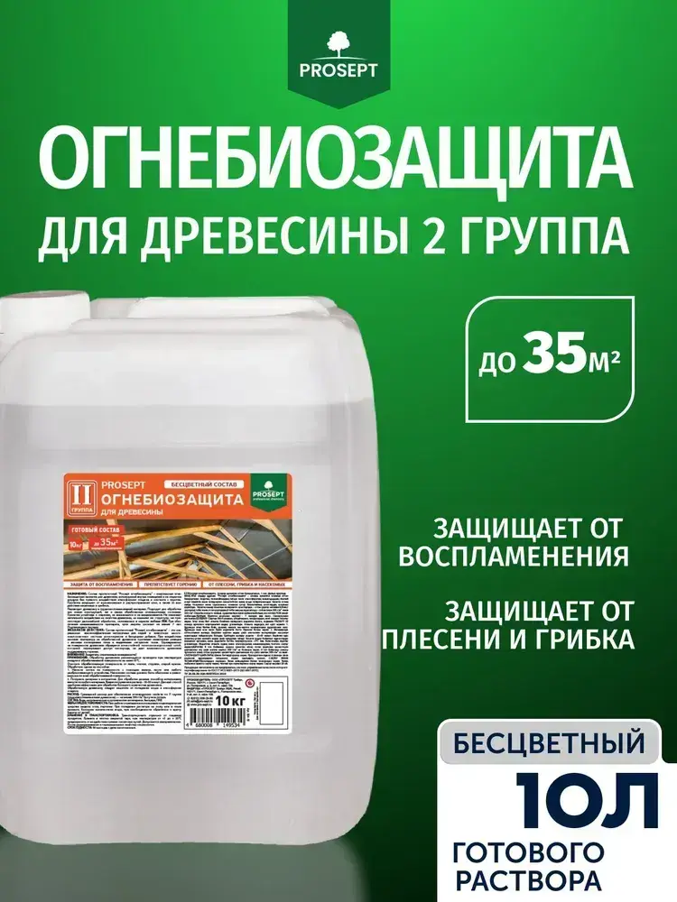 ОгнеБиоЗащита для дерева 2 группа, огнезащита PROSEPT (Просепт) бесцветный 10 л. (арт. 064-10)