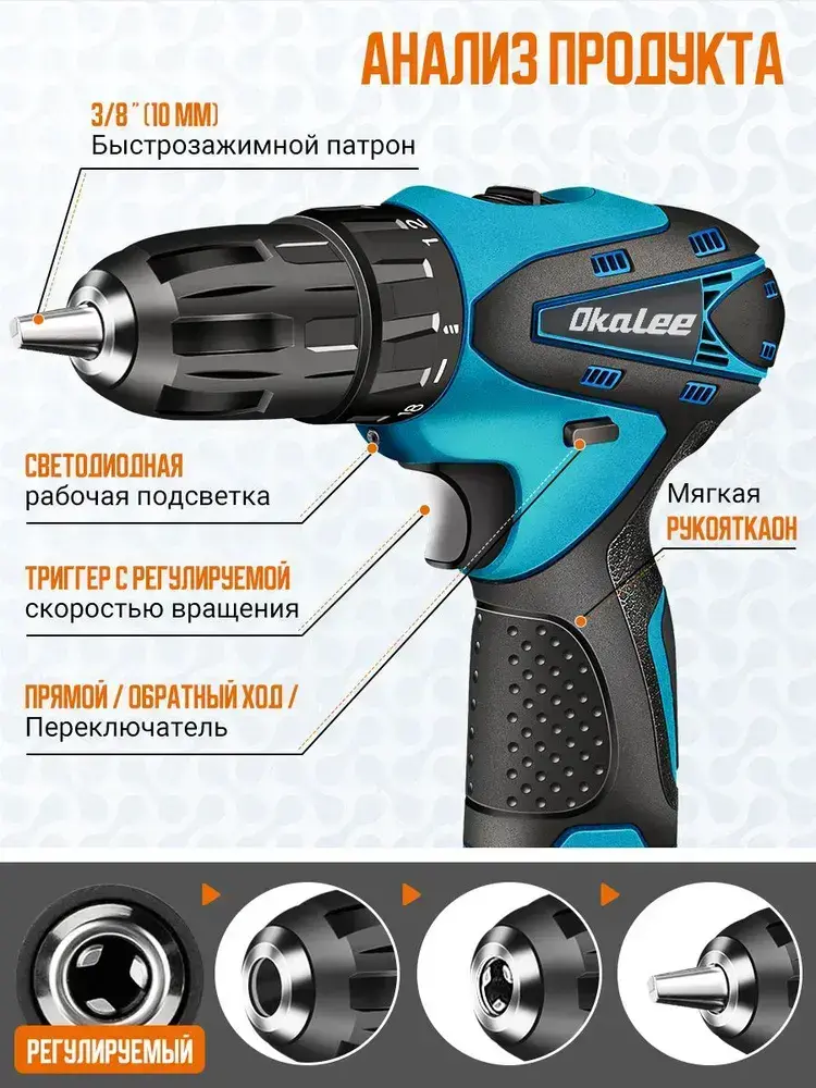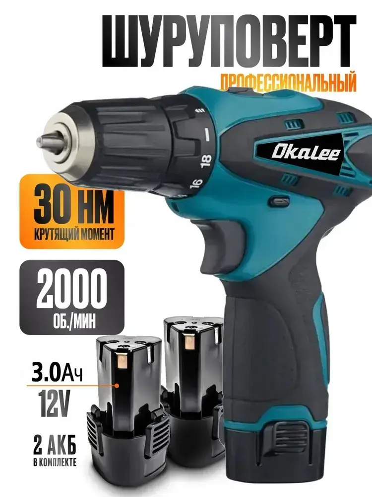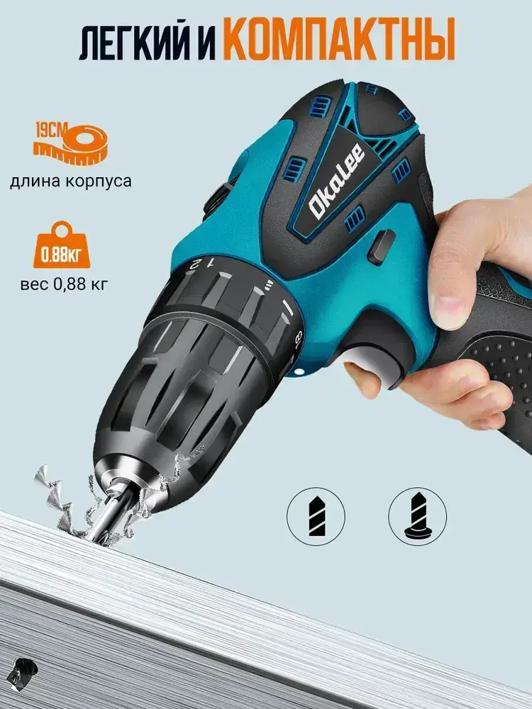 OKALEE Шуруповерт аккумуляторный, дрель шуруповерт аккумуляторная 12В