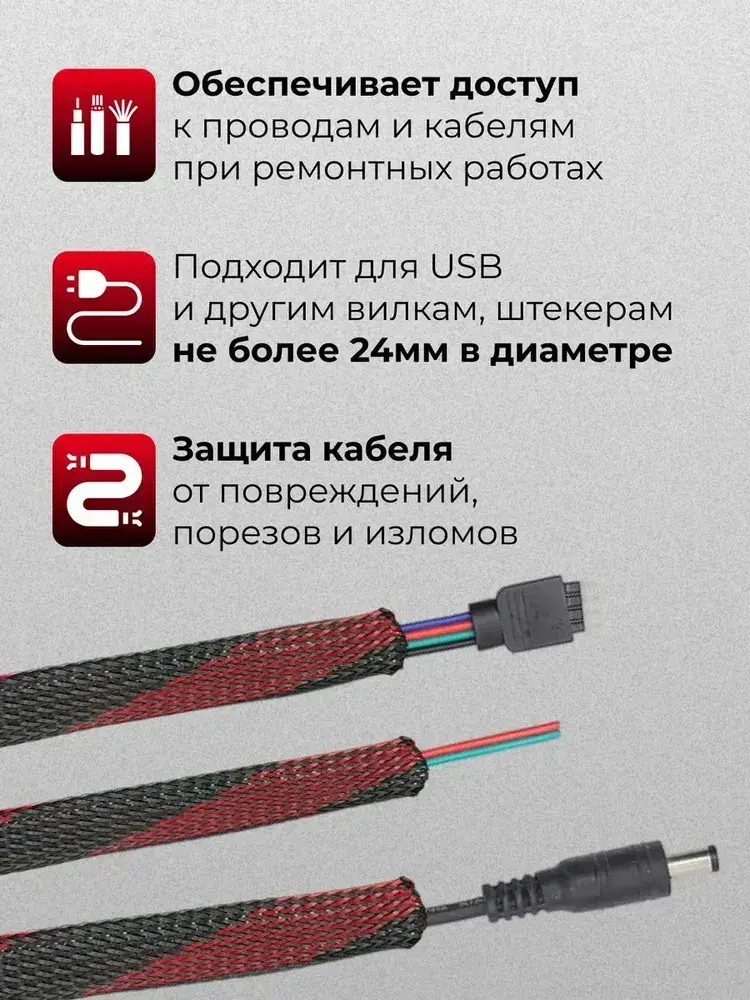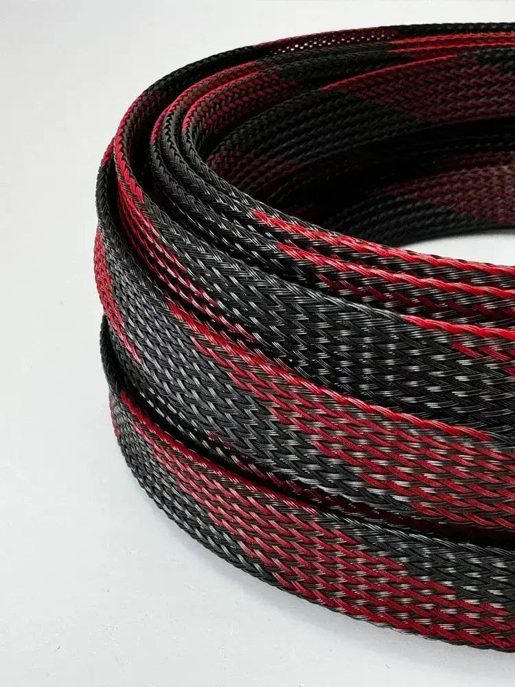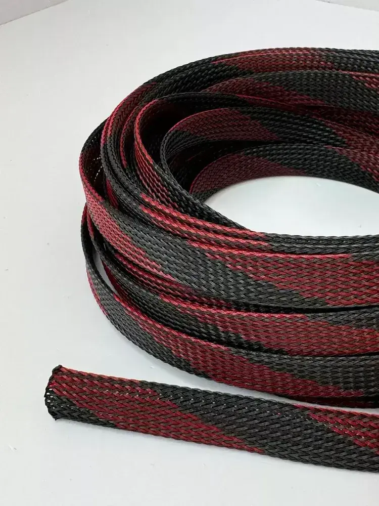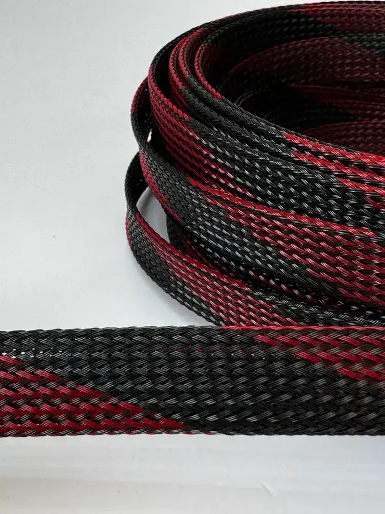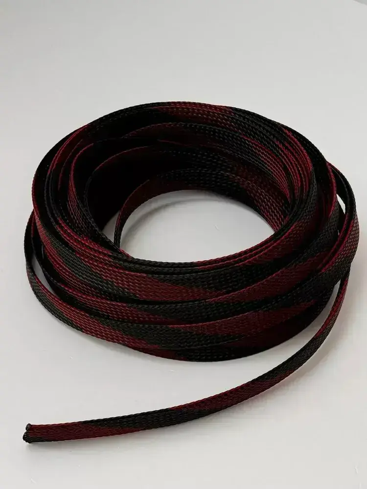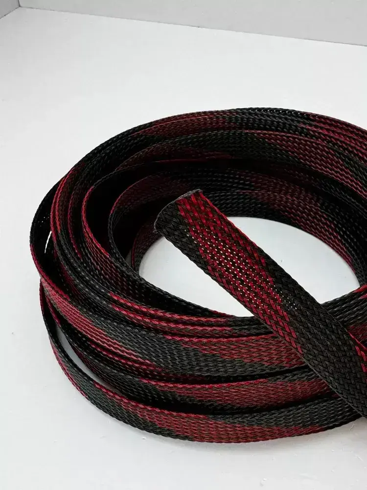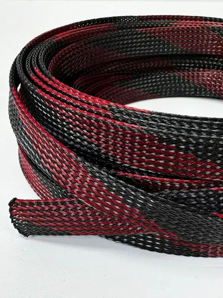 Оплетка кабельная из полиэстера змеиная кожа 12, 10-22мм, черно-красная, 10м