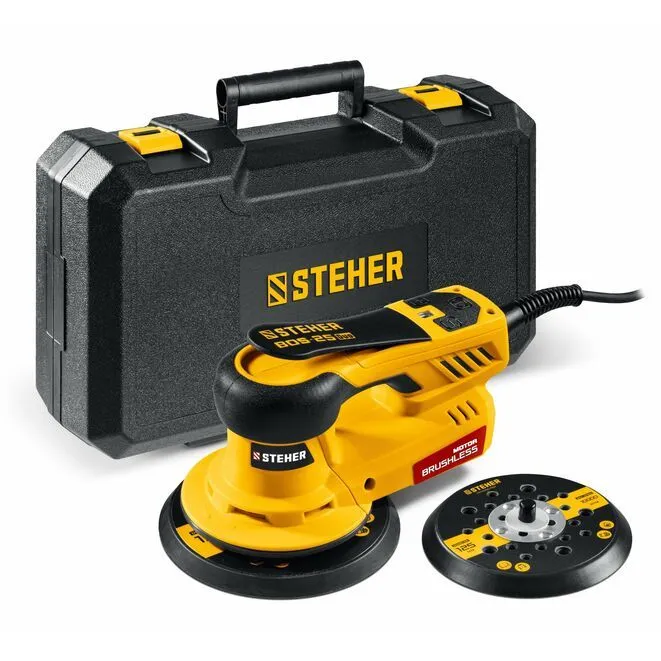 Орбитально-шлифовальная машина бесщеточная, кейс, STEHER BOS-25 Duo, d125 / d150 мм, 2.5 мм, 350 Вт