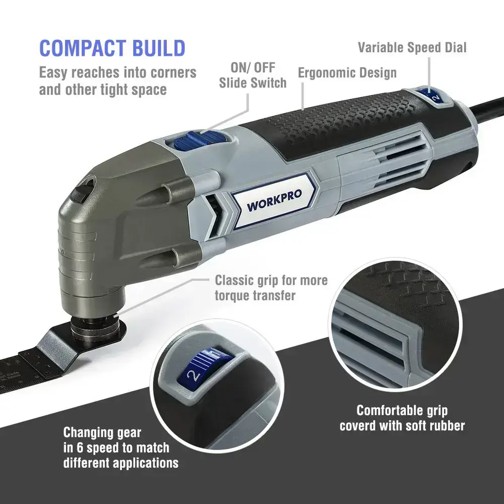 Осциллирующий многофункциональный инструмент 300 Вт, 6 регулируемых скоростей с аксессуарами 16 шт