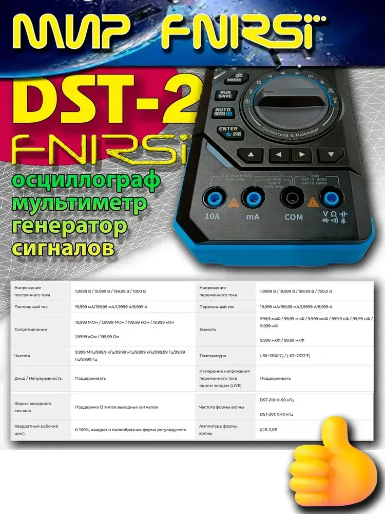 Осциллограф FNIRSI DST-210 3в1 портативный цифровой мультиметр генератор сигналов