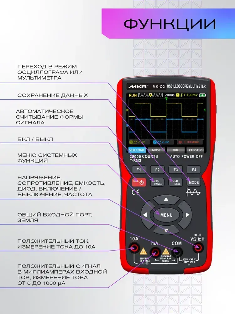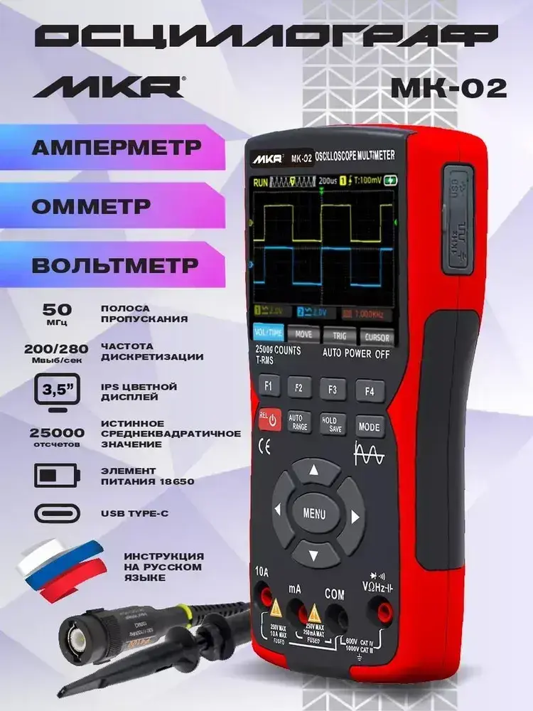 Осциллограф цифровой MKR MK-O2 мультиметр двухканальный