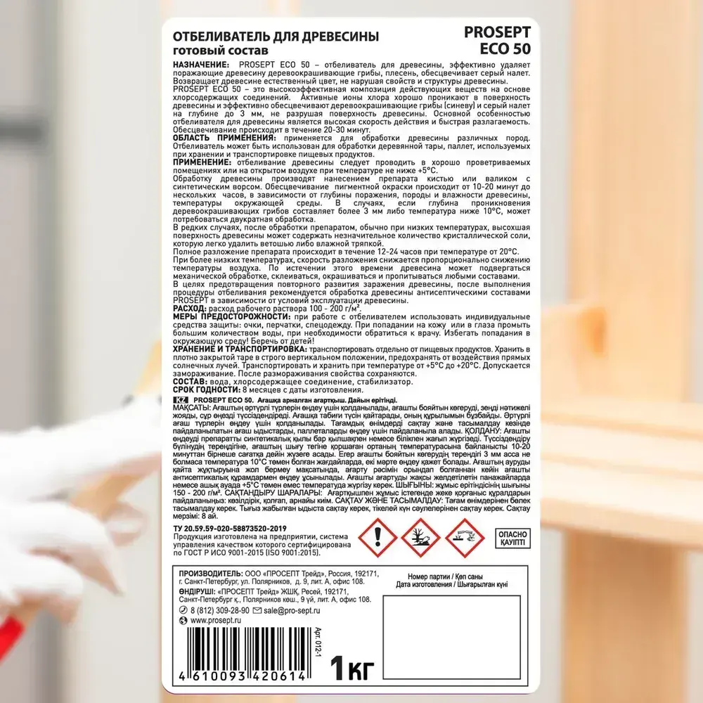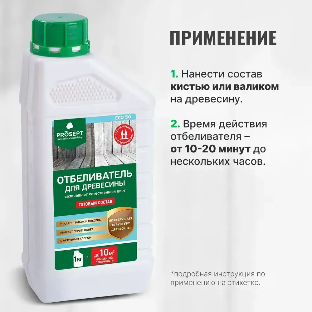 Отбеливатель для древесины PROSEPT ECO 50 готовый состав 1 кг