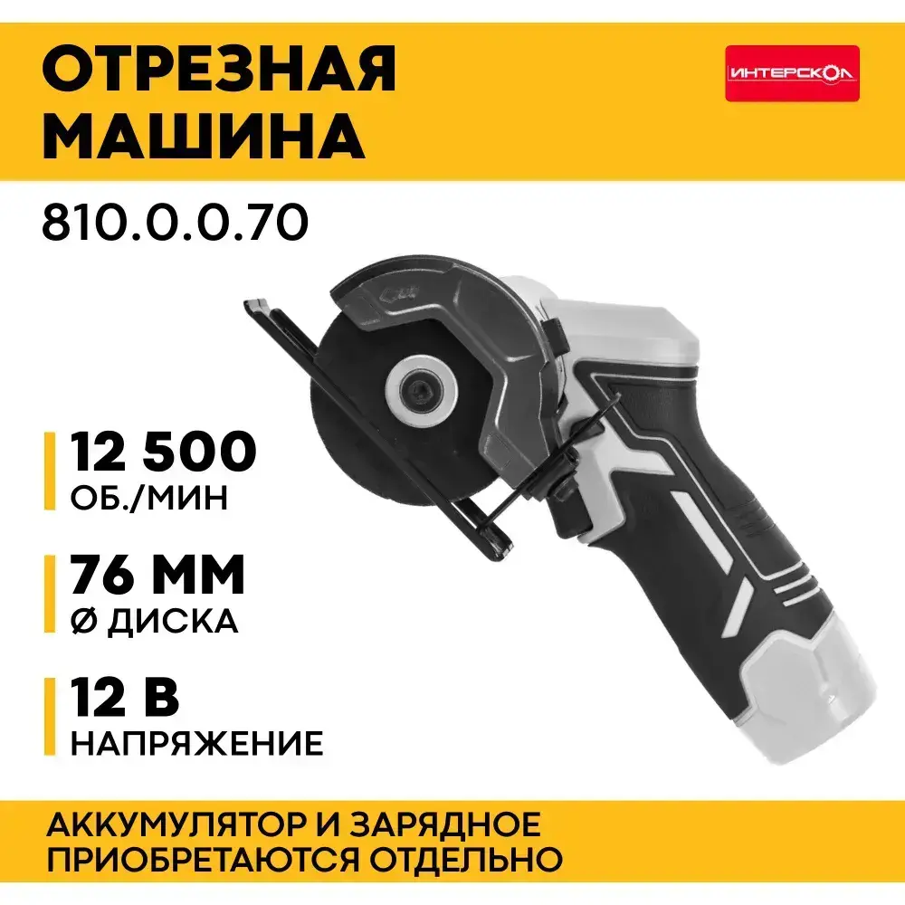 Отрезная пила по металлу аккумуляторная ОМА-76/12 ИНТЕРСКОЛ / отрезная машина