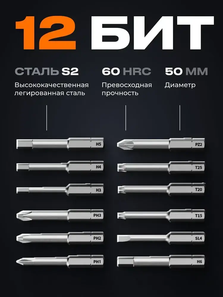 Отвертка аккумуляторная 12в1 HOTO Portable набор с битами электрическая для дома