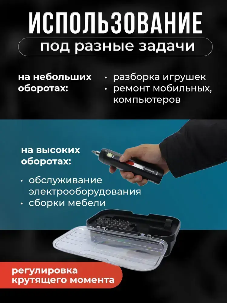 Отвертка электрическая аккумуляторная 26 в 1,набор бит с магнитным наконечником 26 в 1 с подсветкой,(10.8В, 5Нм, 1,5Ач,набор оснастки)