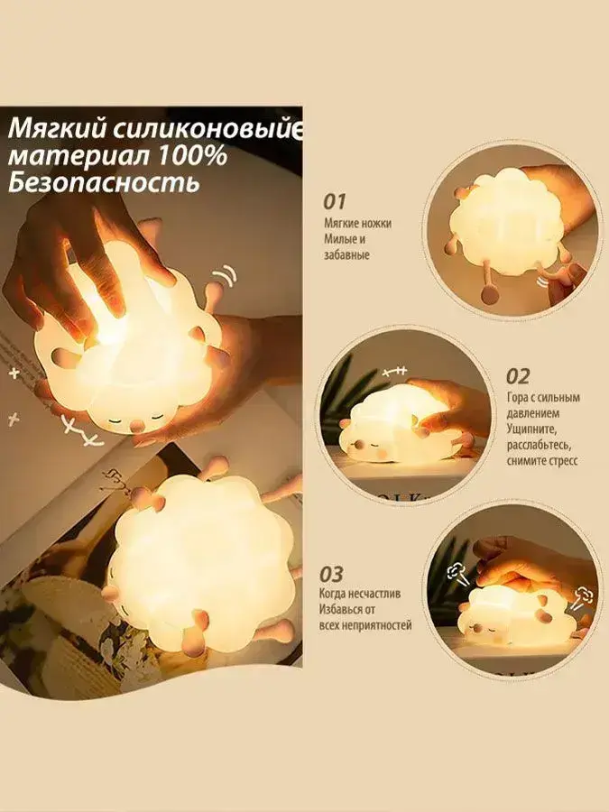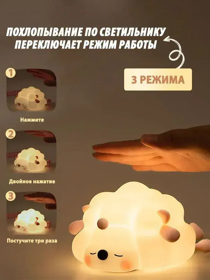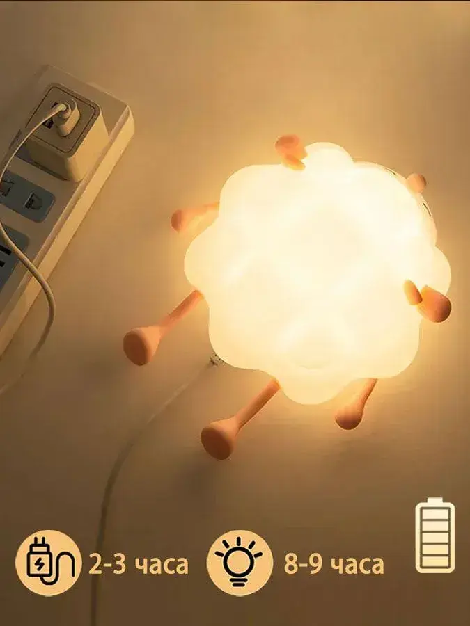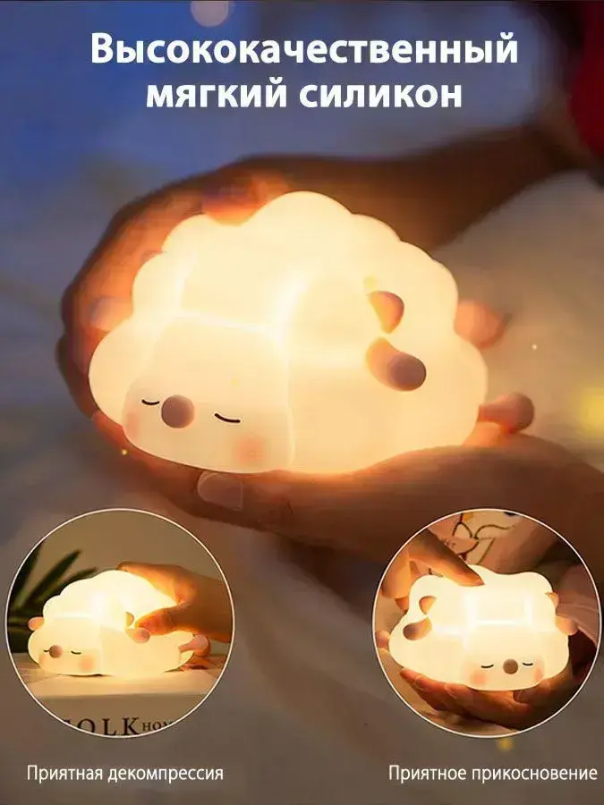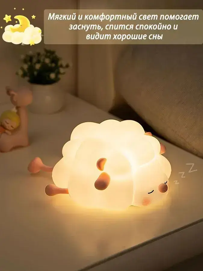 овечки ночник детский силиконовый 1 шт, три уровня яркости, выключение по таймеру, можно использовать в детской и спальне