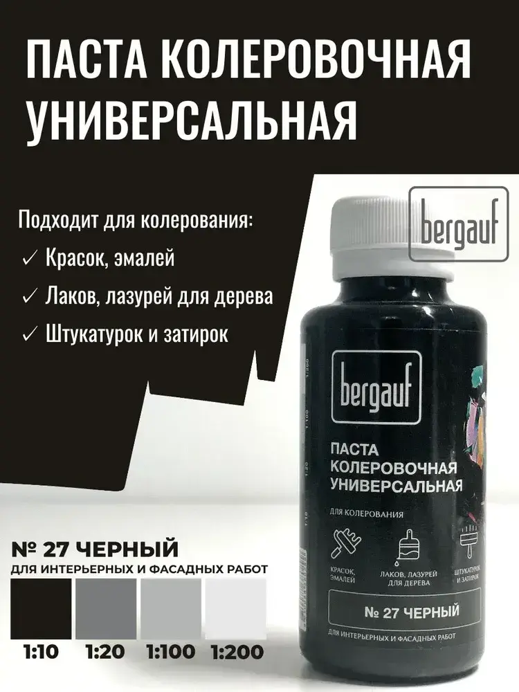 Паста колеровочная универсальная черная, 0,1 л. (Колер для краски Bergauf)