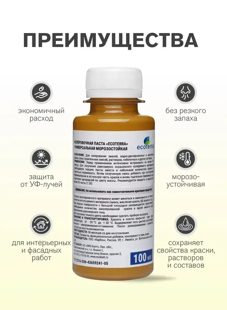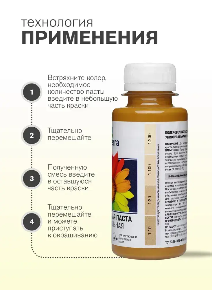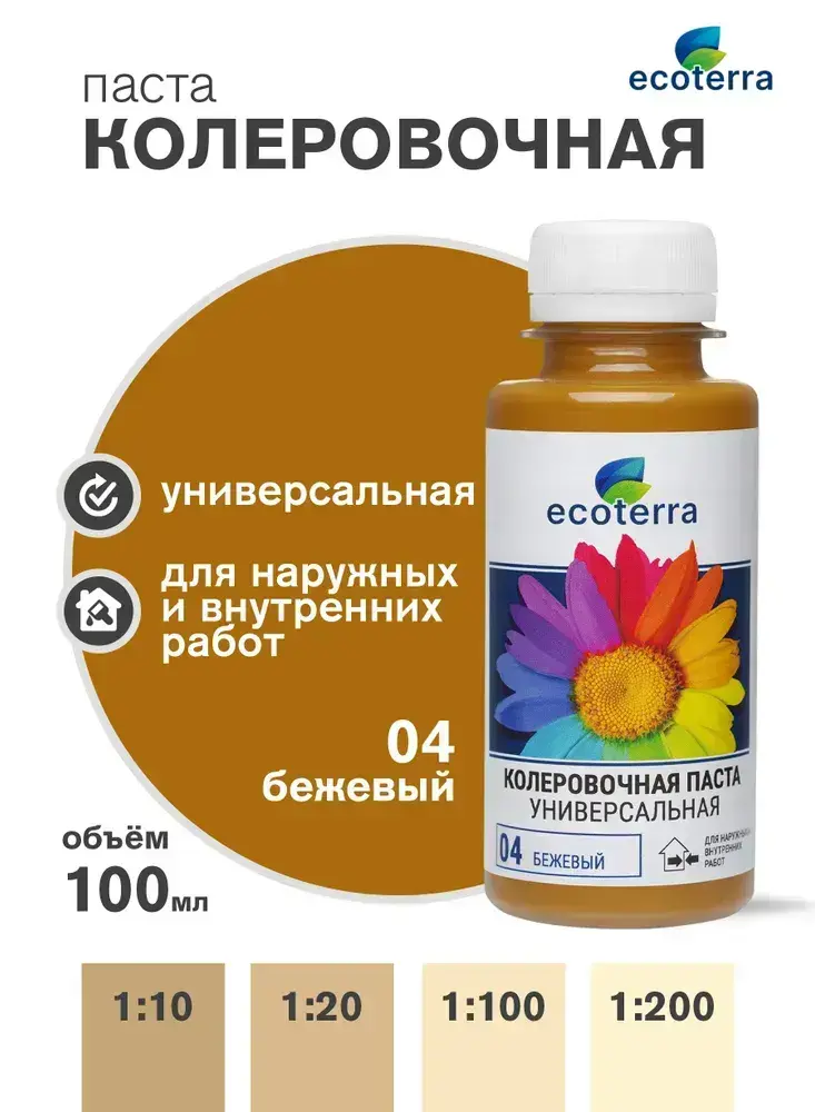 Паста колеровочная универсальная ECOTERRA колер-паста бежевый N4 100 мл