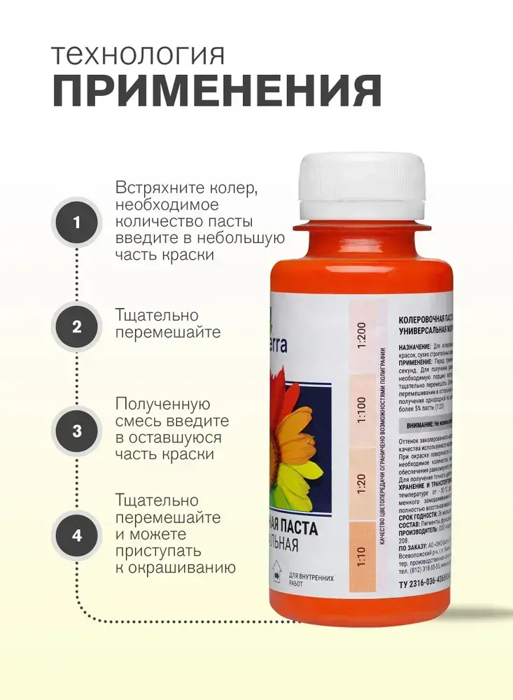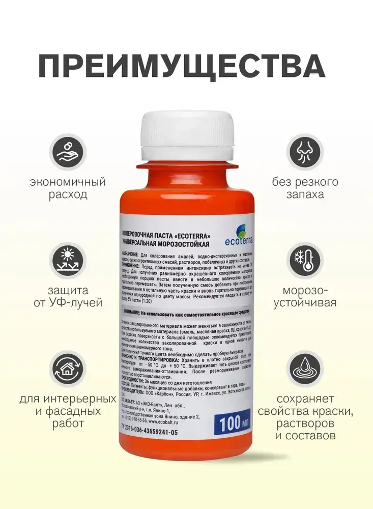 Паста колеровочная универсальная ECOTERRA колер-паста персик/оранжевый N5 100 мл