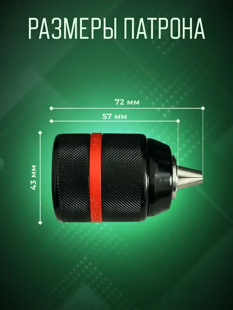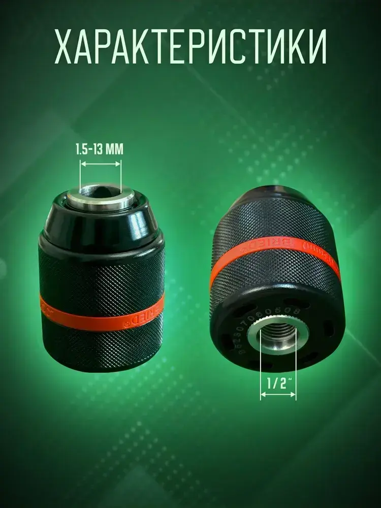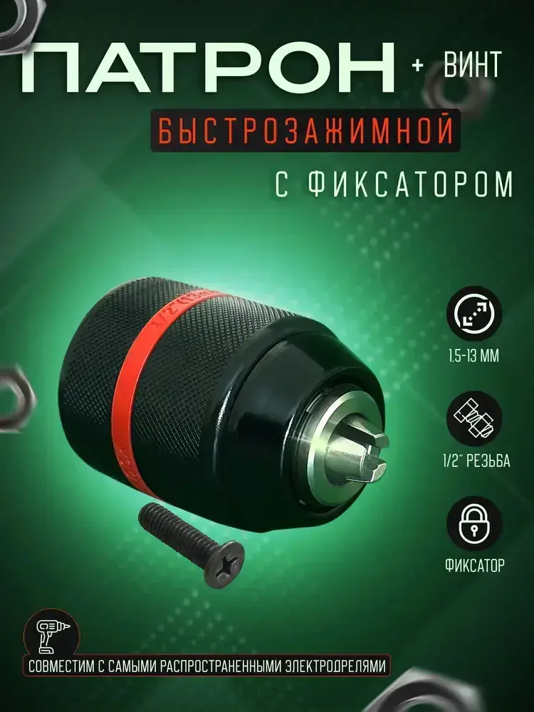 Патрон для дрели быстрозажимной с винтом 1.5-13 мм, резьба 1/2" - 20 UNF, цельнометаллический с фиксатором