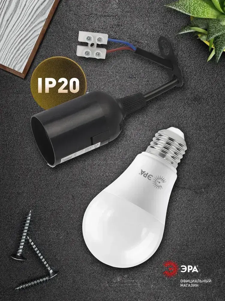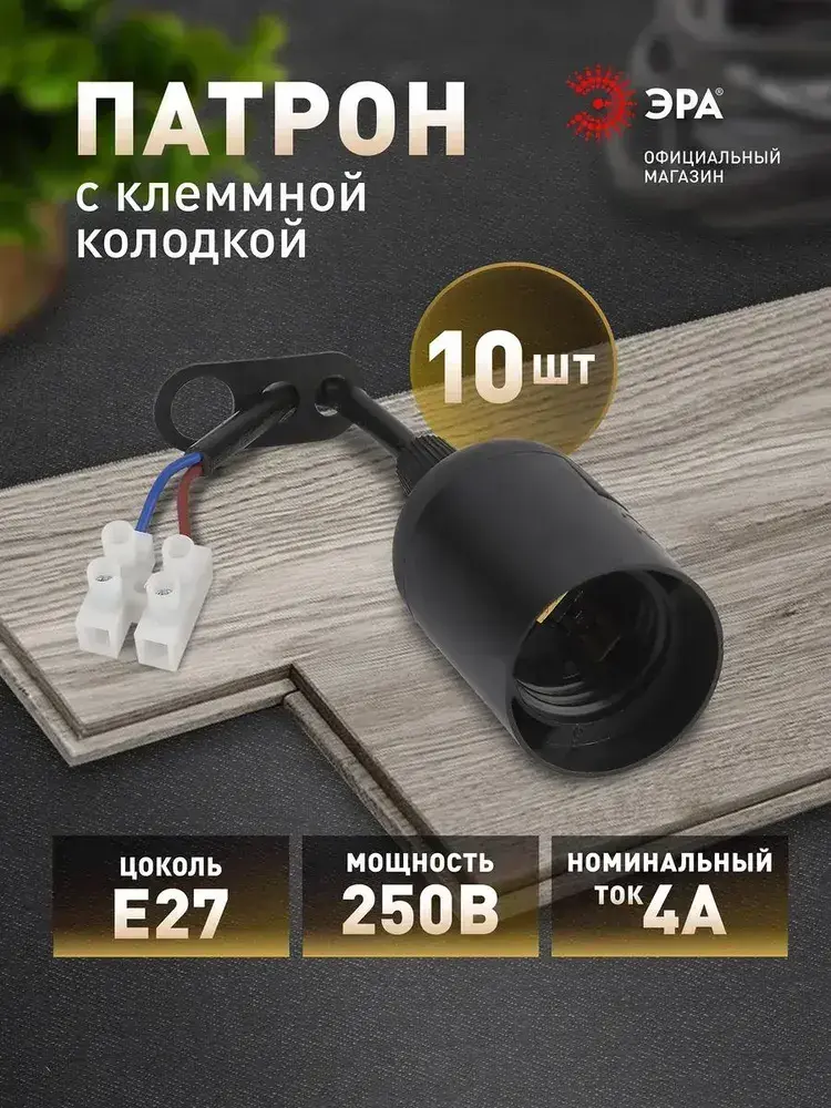 Патрон для лампы Е27 ЭРА с клеммной колодкой, черный, набор 10 штук
