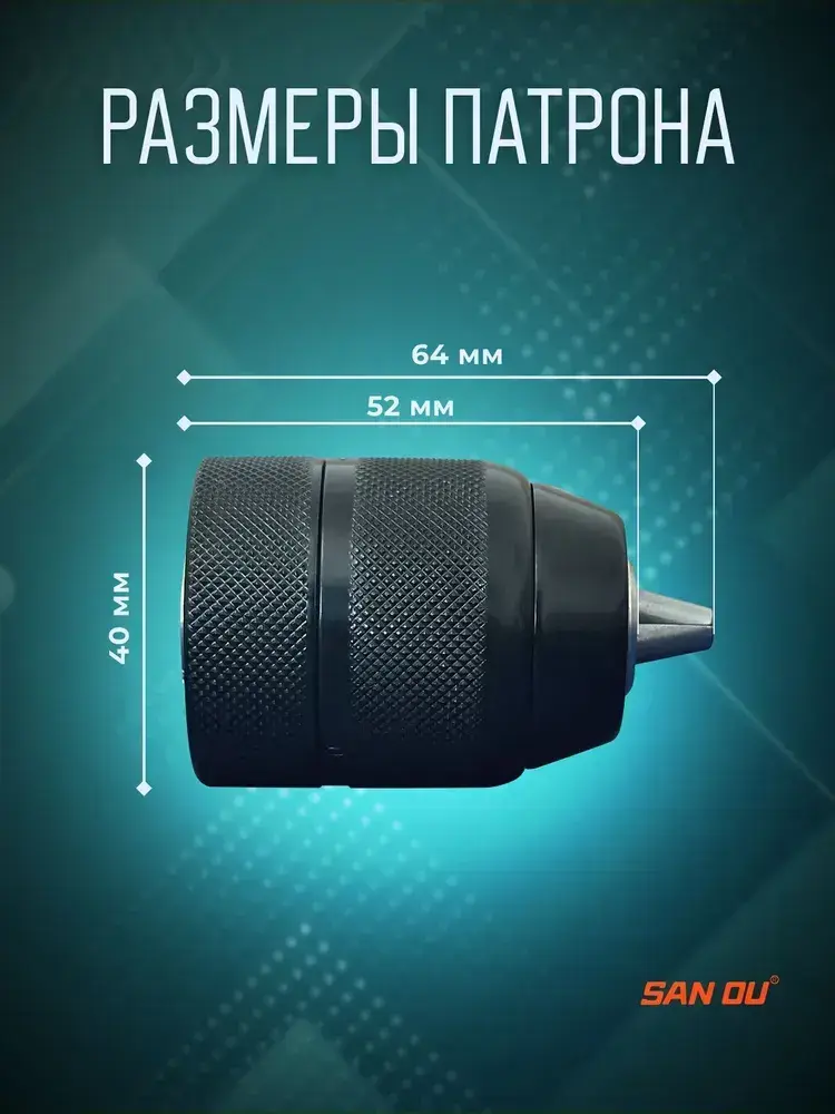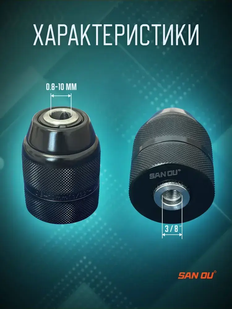 Патрон для шуруповерта быстрозажимной 0.8-10 мм, резьба 3/8" - 24 UNF, цельнометаллический с фиксатором