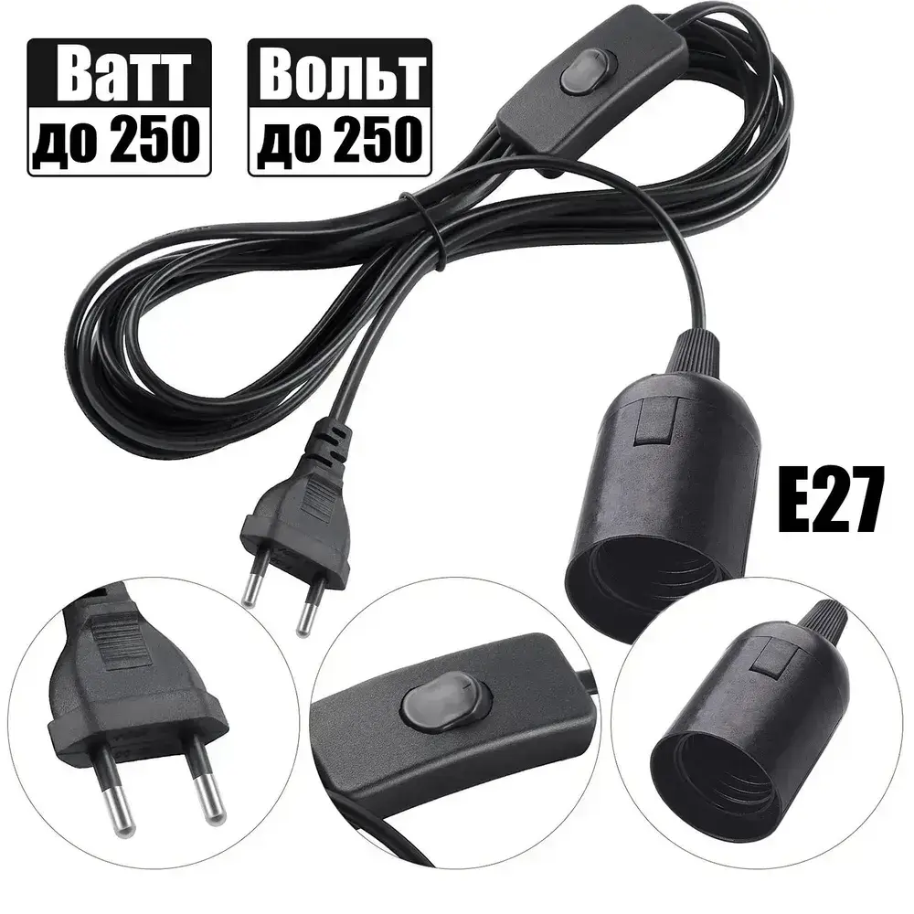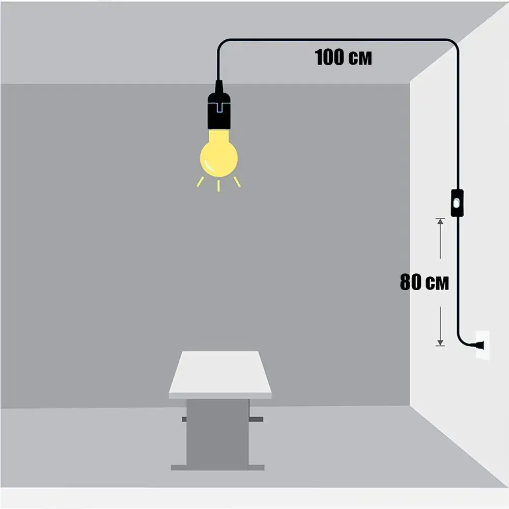 Патрон E27 с проводом и выключателем 1.8м Орбита OT-ELS11 Черный