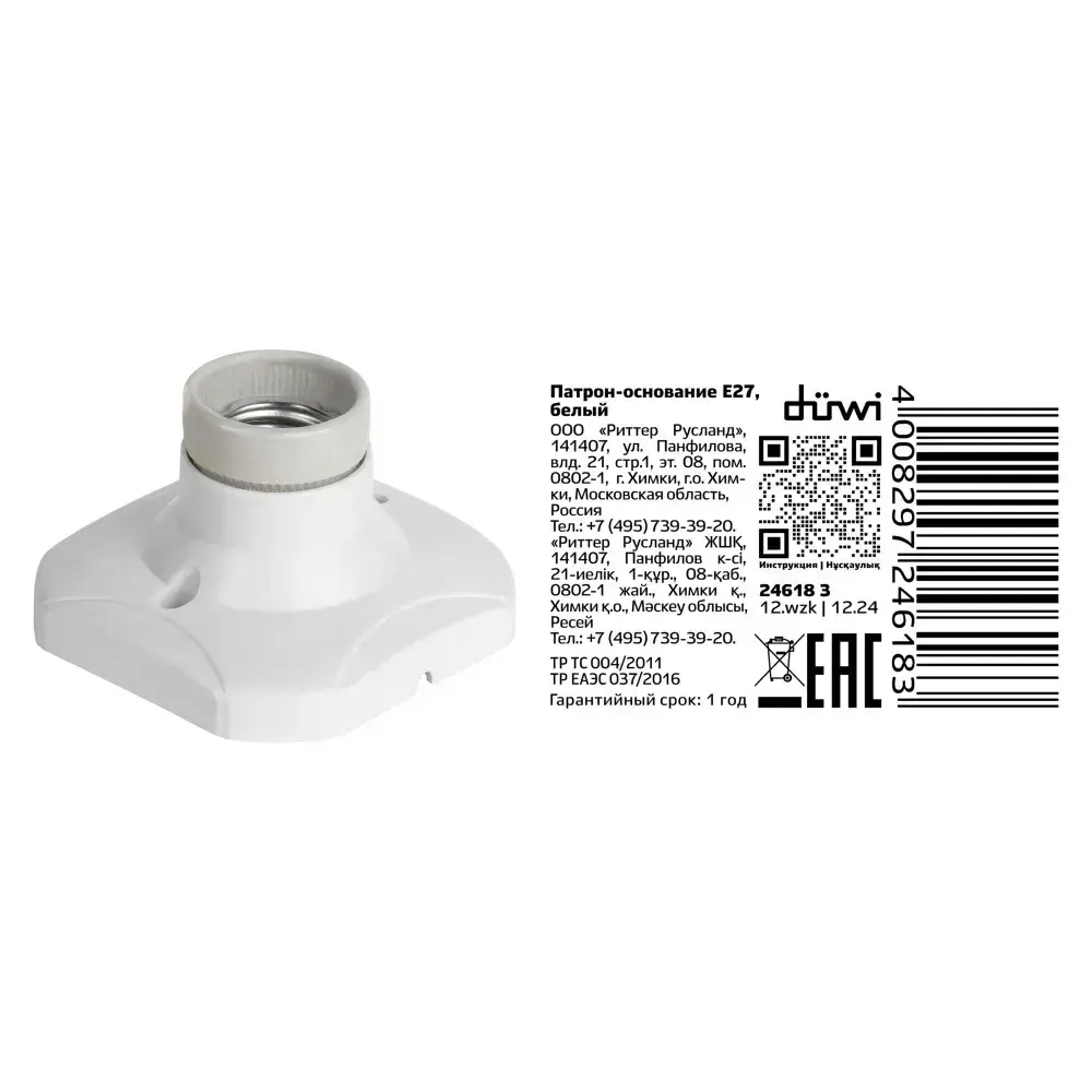 Патрон-основание E27, керамический, белый, duwi 24618 3