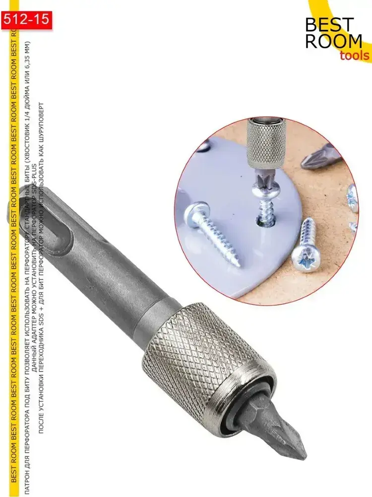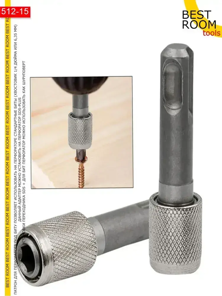 Патрон, переходник для перфоратора и электродрели под SDS + plus для бит HEX 6,35 быстрозажимной