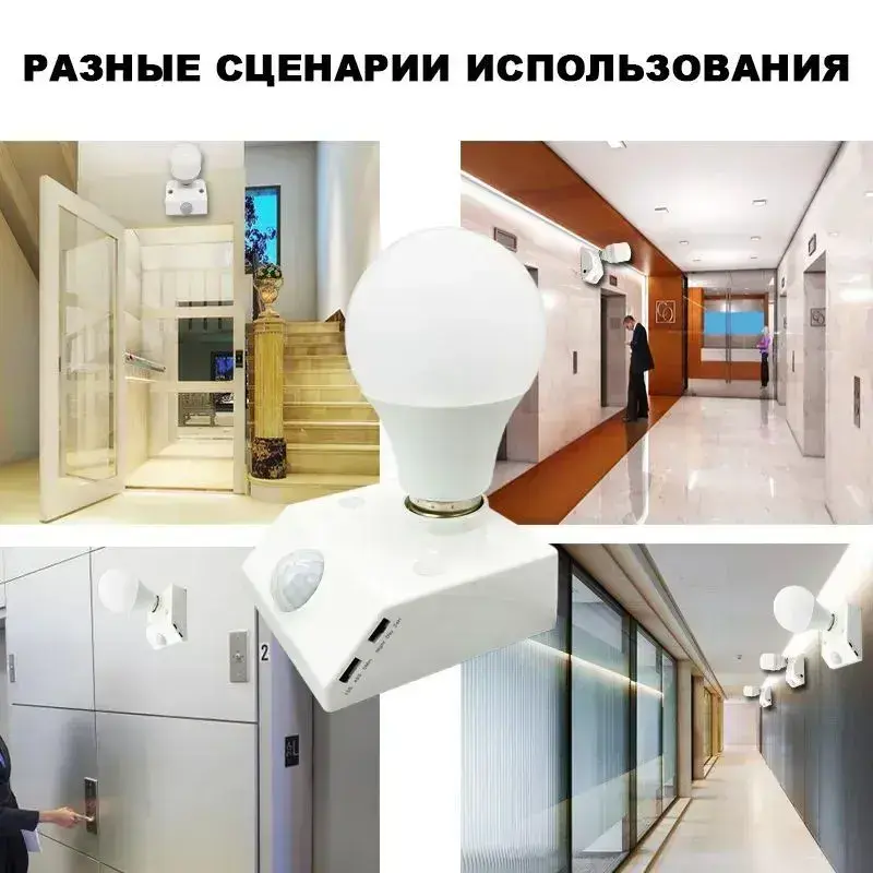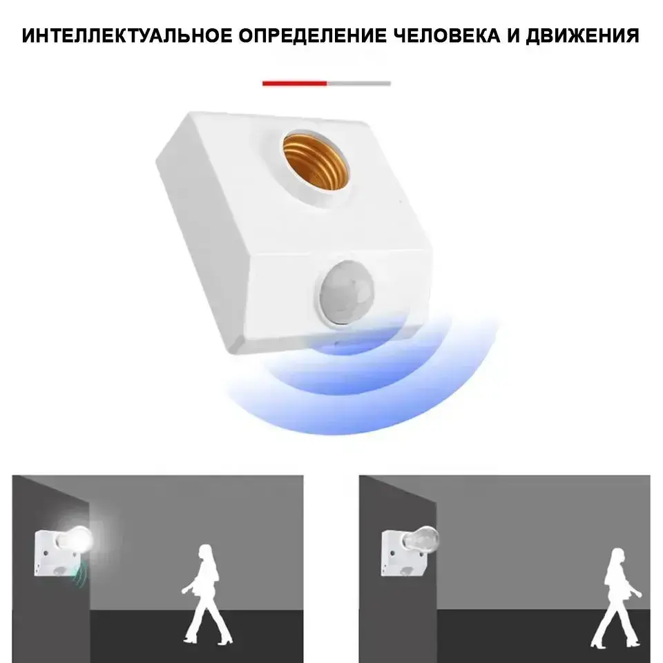 Патрон с датчиком движения и освещенности 220В цоколь Е27