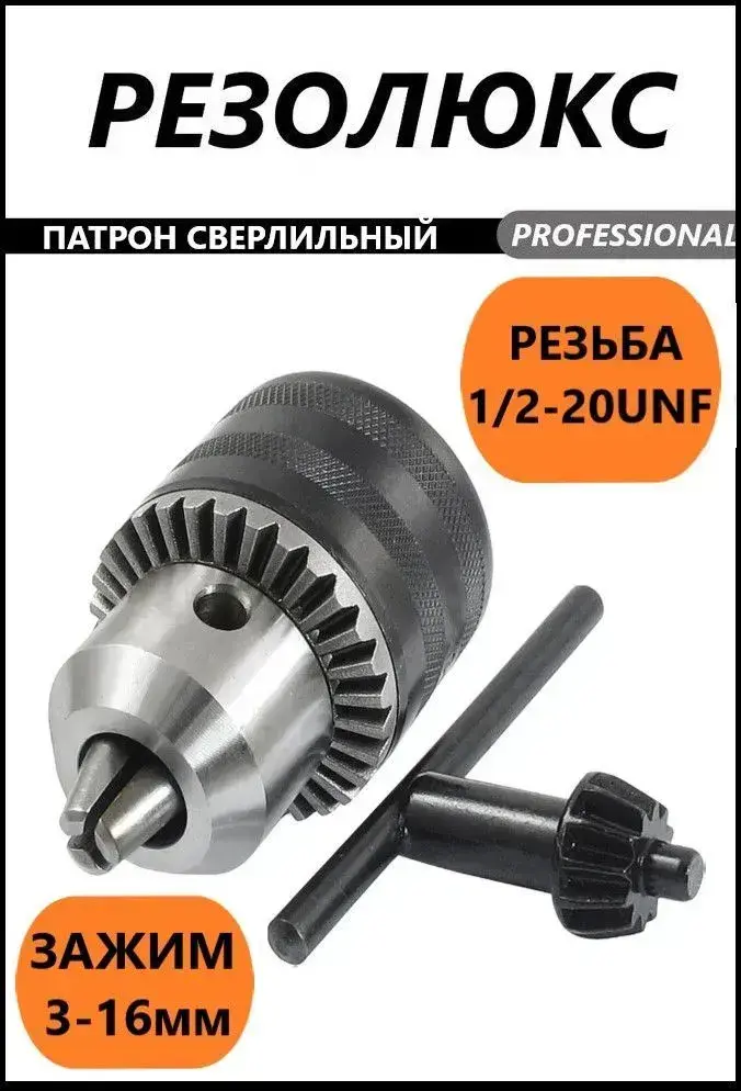 Патрон сверлильный резьбовой ПСР-16 (1/2- 20 UNF) с ключом "РЕЗОЛЮКС"