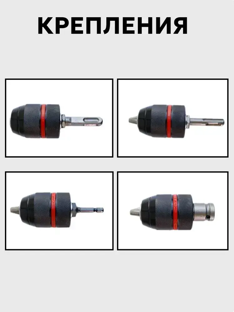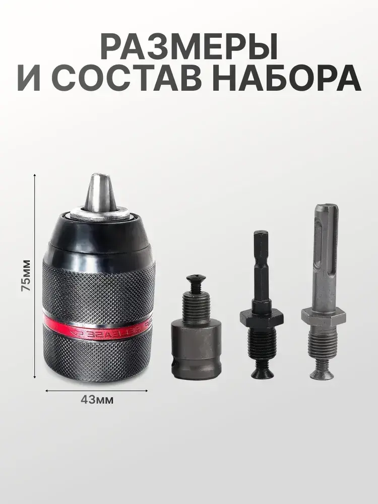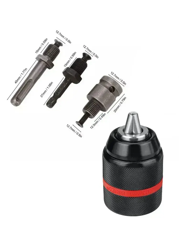 Патрон ударный быстрозажимной, для дрели, с 1/4" шестигранный хвостовик адаптер, цельнометаллический, 1/2-20UNF, 1.5-13 мм, набор 4в1