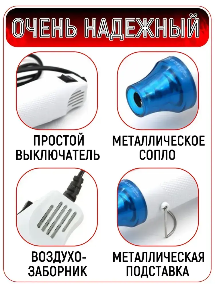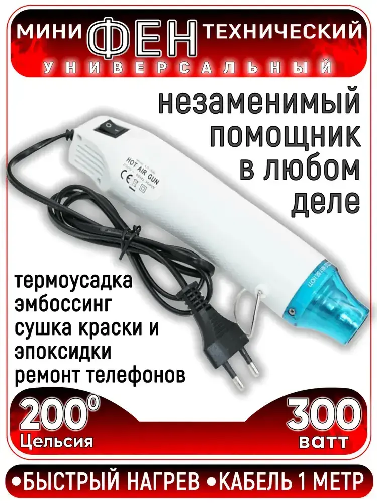 Паяльный мини-фен. Мини строительный фен для пайки, термоусадки 220v, цвет белый