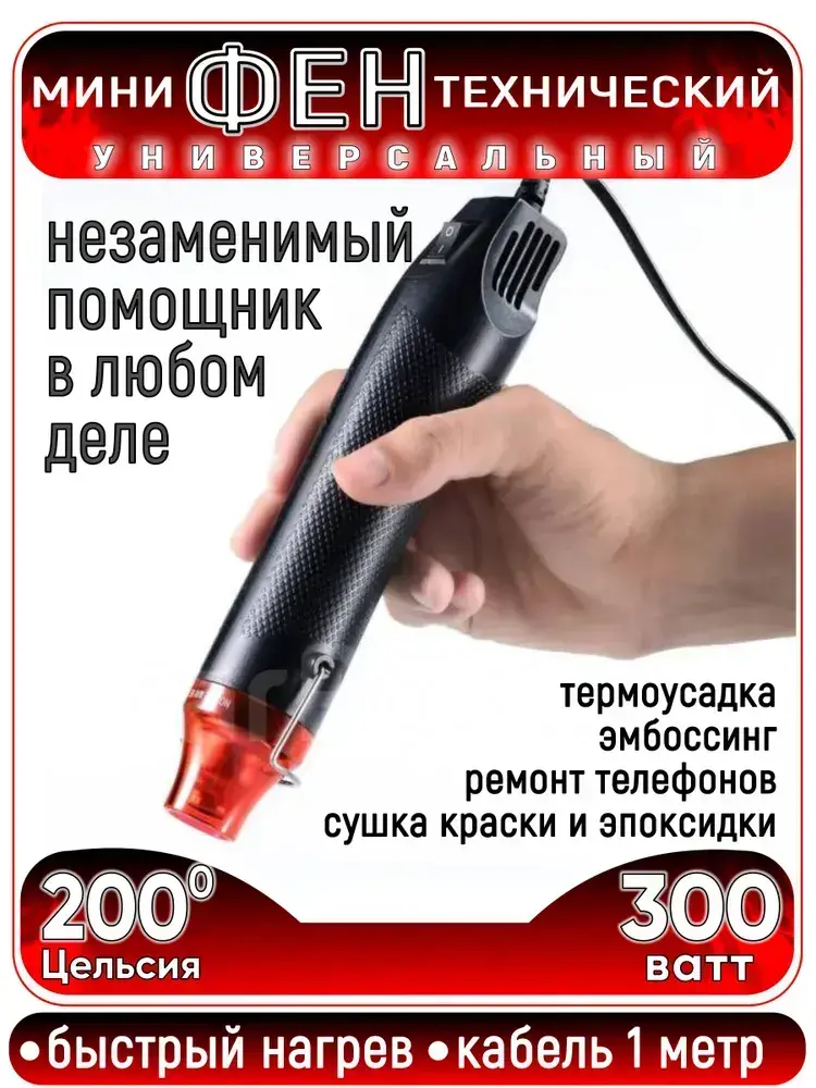 Паяльный мини-фен. Мини строительный фен для пайки, термоусадки 220v, цвет черный