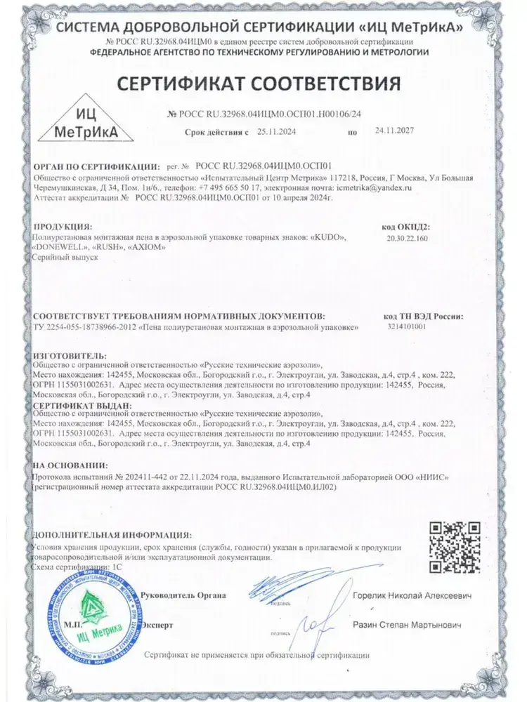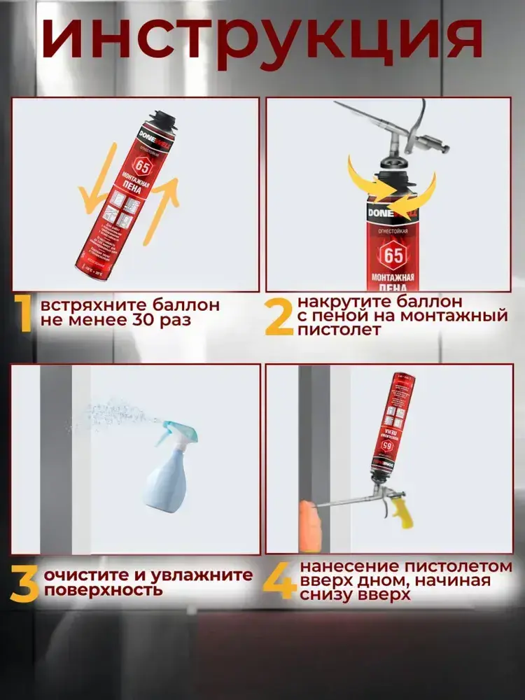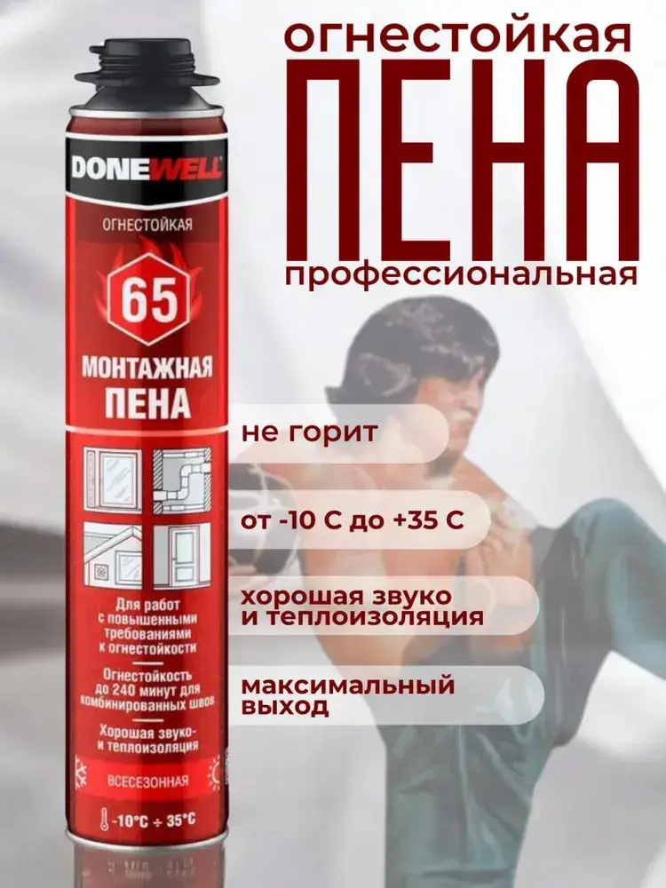 Пена монтажная огнестойкая профессиональная всесезонная Donewell 65