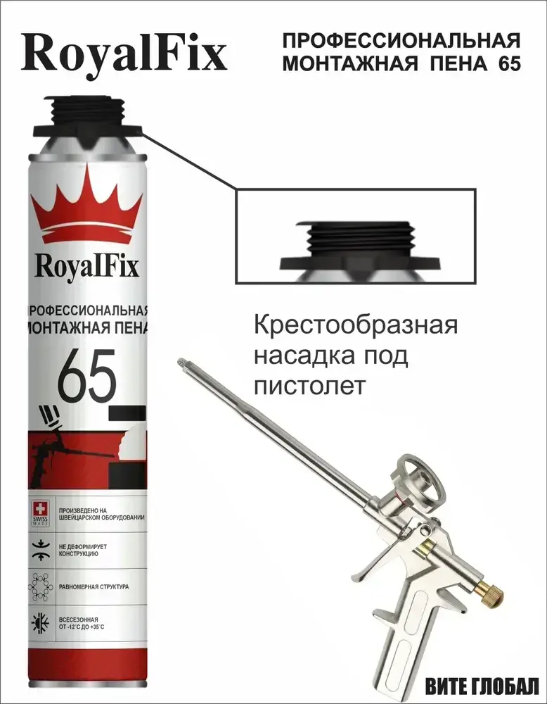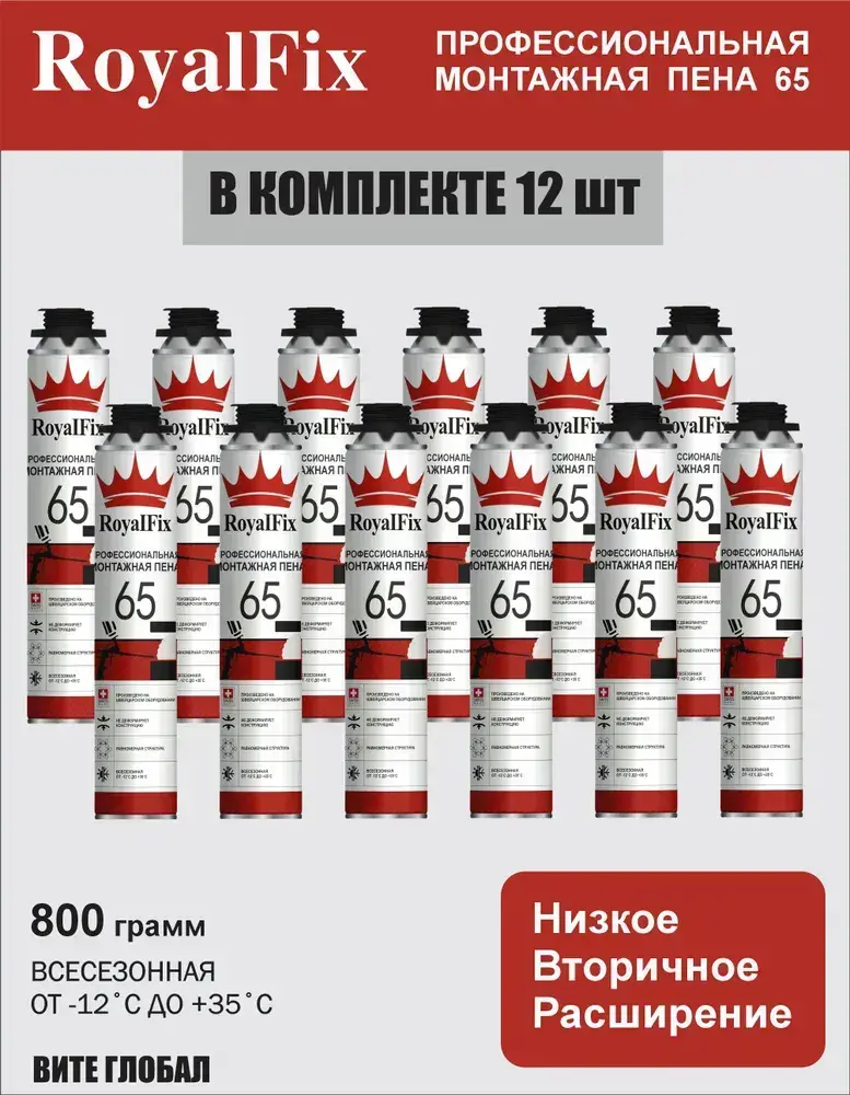 Пена Монтажная под пистолет ROYALFIX 65 12шт.