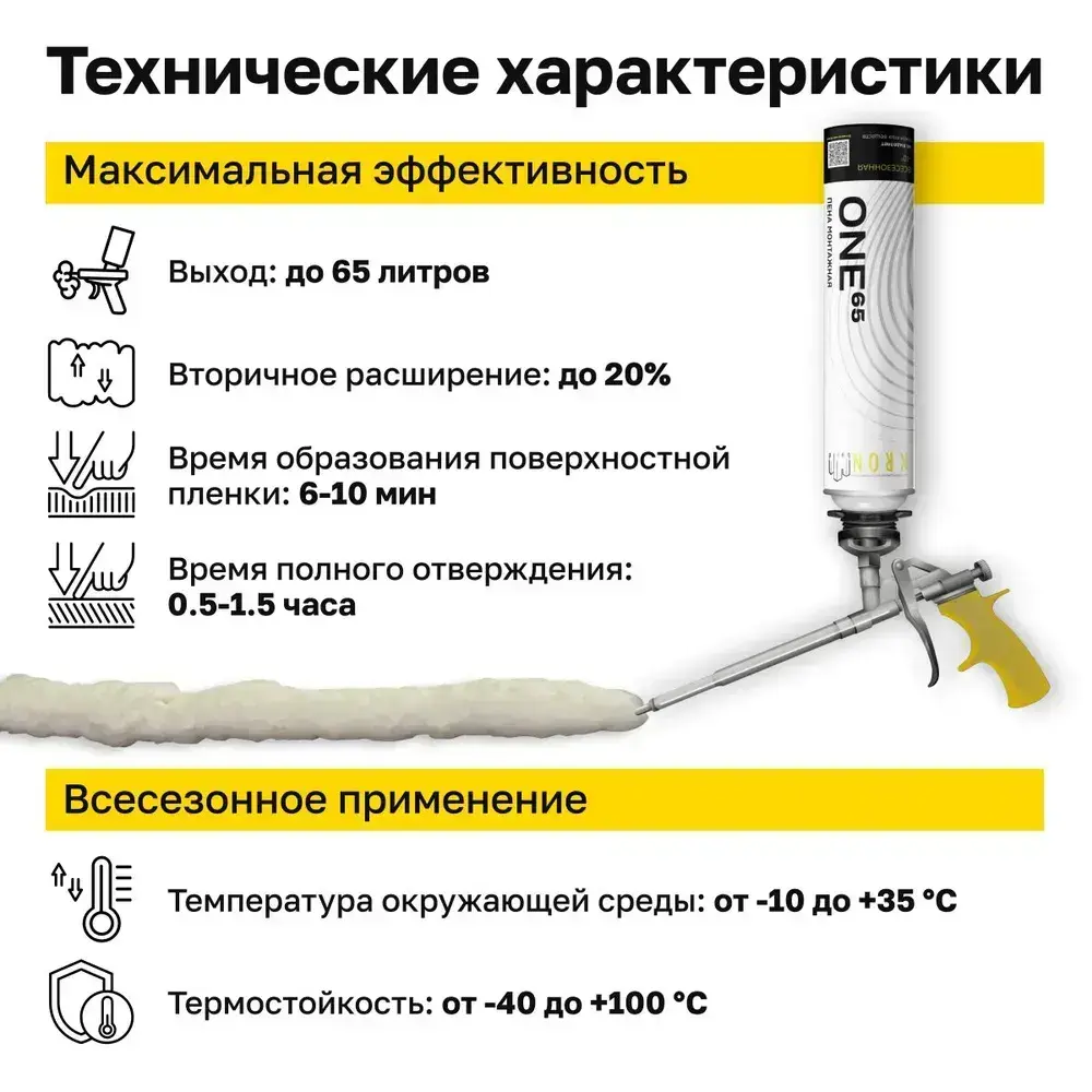 Пена монтажная полиуретановая профессиональная всесезонная KRONbuild ONE 65